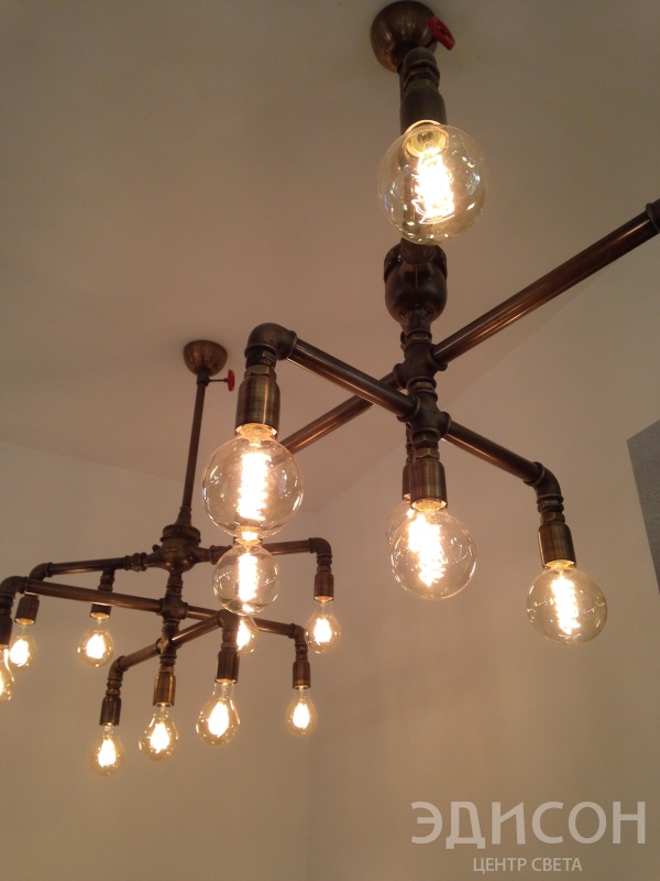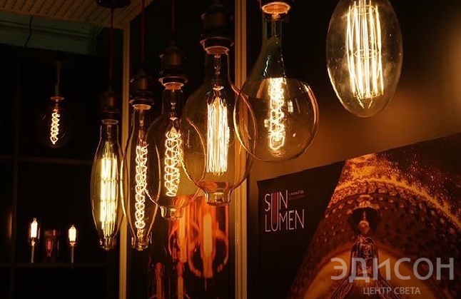 ...Ретро-лампы с разнообразными формами колб и спиралей с цоколем Е40 от «SUNLUMEN» – вполне самостоятельные дизайнерские светильники.…Люстры и настольная лампа известного турецкого бренда «SEVINC»....Коллекция «Эколиния» от российской проектной группы «Механика света» и шедевр данной коллекции - настольная лампа «Механограф».