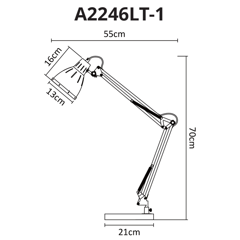 Настольная лампа Artelamp A2246LT-1WH серии Pixar. Подчеркнет стиль помещения. Размеры 55x21x70 cm. Параметры пылевлагозащиты IP — 20. Форма конусная. Плафон металлический белого цвета, а материал/цвет арматуры металл/белый. Использует 1 лампу с цоколем E27. Идеально подходит для офиса. Страна происхождения бренда — Италия. Вес с упаковкой 3 kg