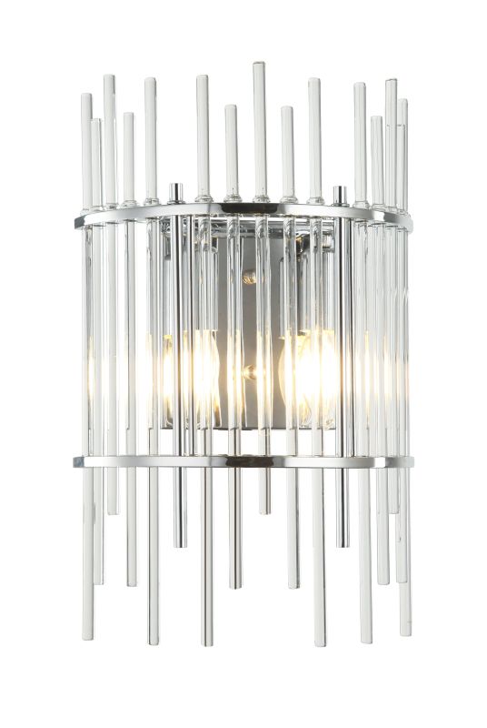Настенное бра из серии Sia имеет металлическую арматуру, гальванизированную в цвет хрома и декорировано прозрачными стеклянными трубочками. Каркас бра отделан металлическими кантами и дополнительно закрепленными металлическими стержнями, гальванизированными в цвет арматуры.