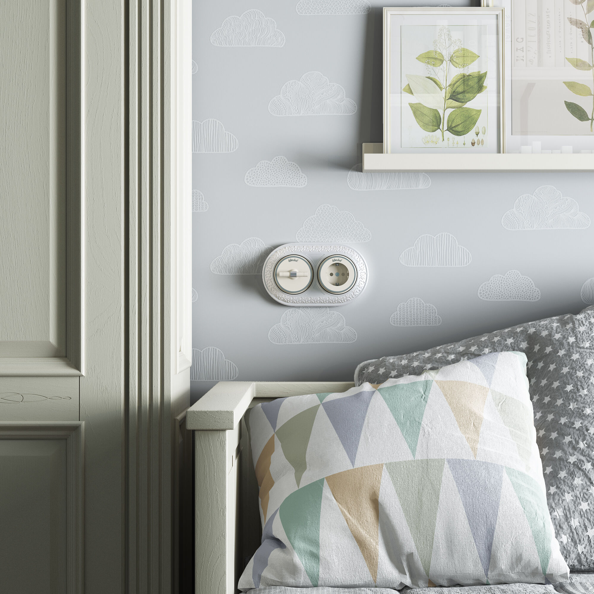 Дополнить образ помогут рамки Werkel из металла, стекла, и дерева, а так же аксессуары для накладного монтажа проводки.