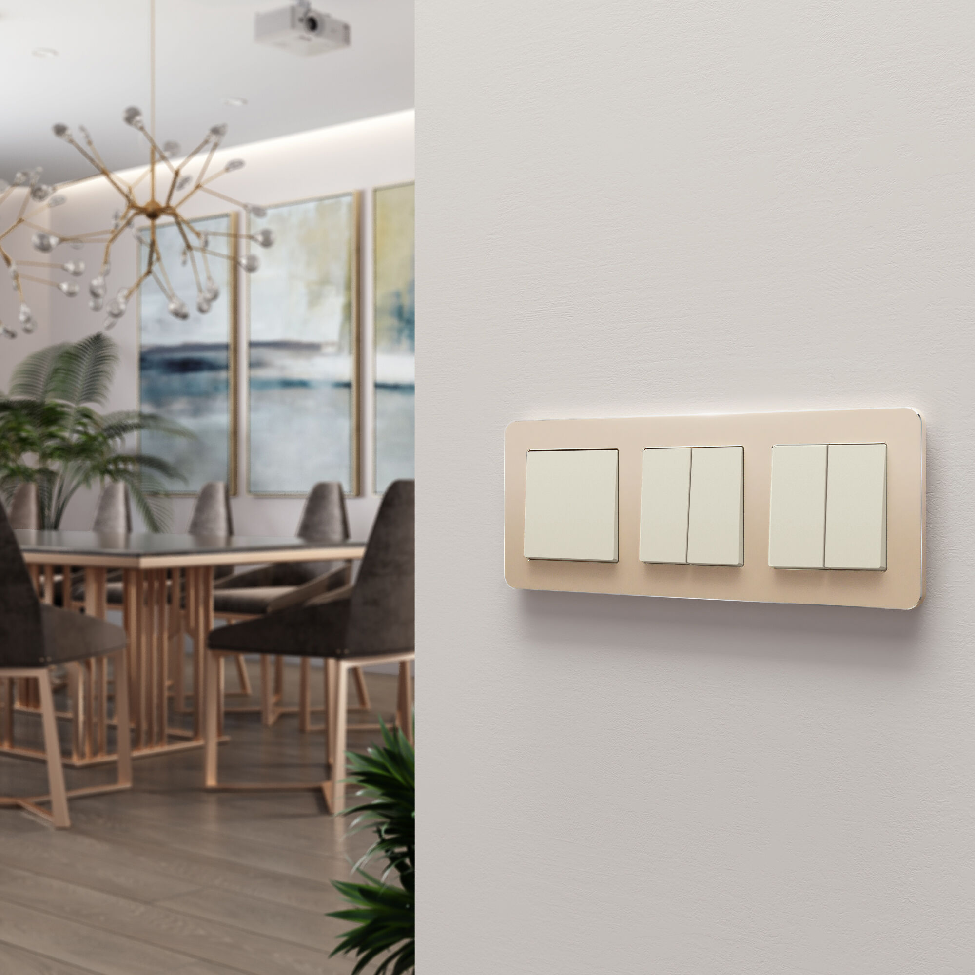 Гармоничное сочетание рамок Platinum с матовыми, глянцевыми и рифлёными фактурами механизмов из богатой