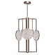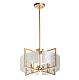Металлическое основание настенного бра окрашено в матовый золотой цвет. Вертикальное бра декорировано округлыми элементами неправильной формы из фактурного прозрачного стекли и из металла, окрашенного в цвет основания.
