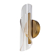 Металлический корпус настенного бра гальванизирован в цвет латуни. Вертикальное бра декорировано изящным элементом из прозрачного акрила с 3D-эффектом.