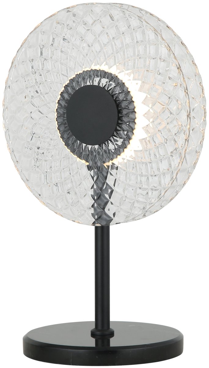 Настольный светодиодный светильник PORTU выполнен из металлической арматуры, окрашенной в черный цвет. Светильники декорированы оригинальным плафоном из двух стеклянных фактурных элементов ввиде круга. В основе настольной лампы используется натуральный мрамор
