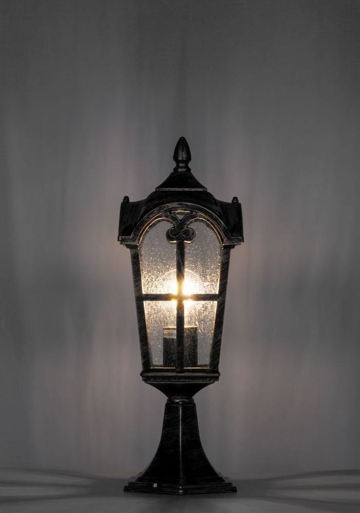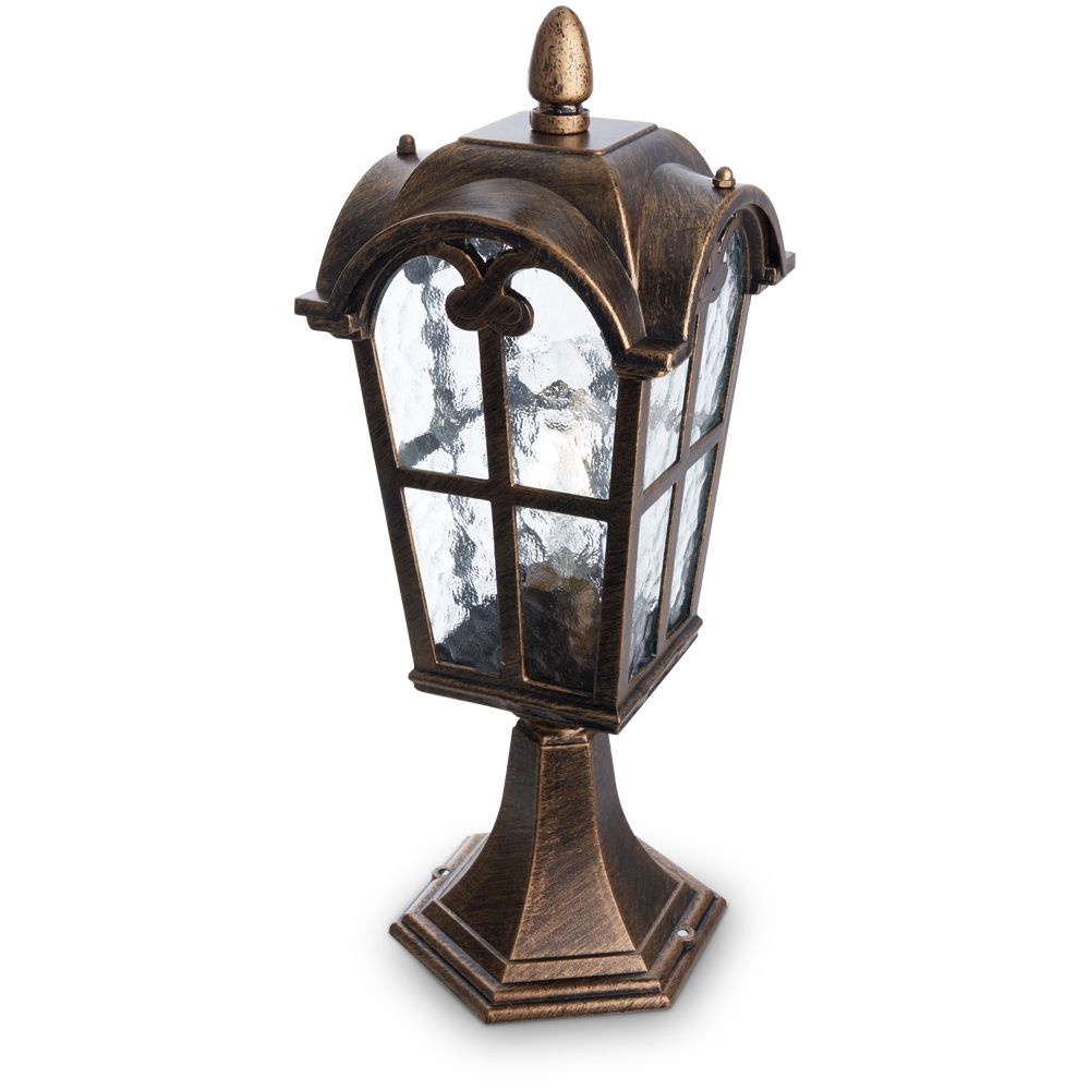 Светильник садово-парковый, серии «Кастелло», (НТУ) FERON PL105 60W, E27, 230V, IP44, цвет черное золото, 4-х гранник, на постамент, 150*150*440мм