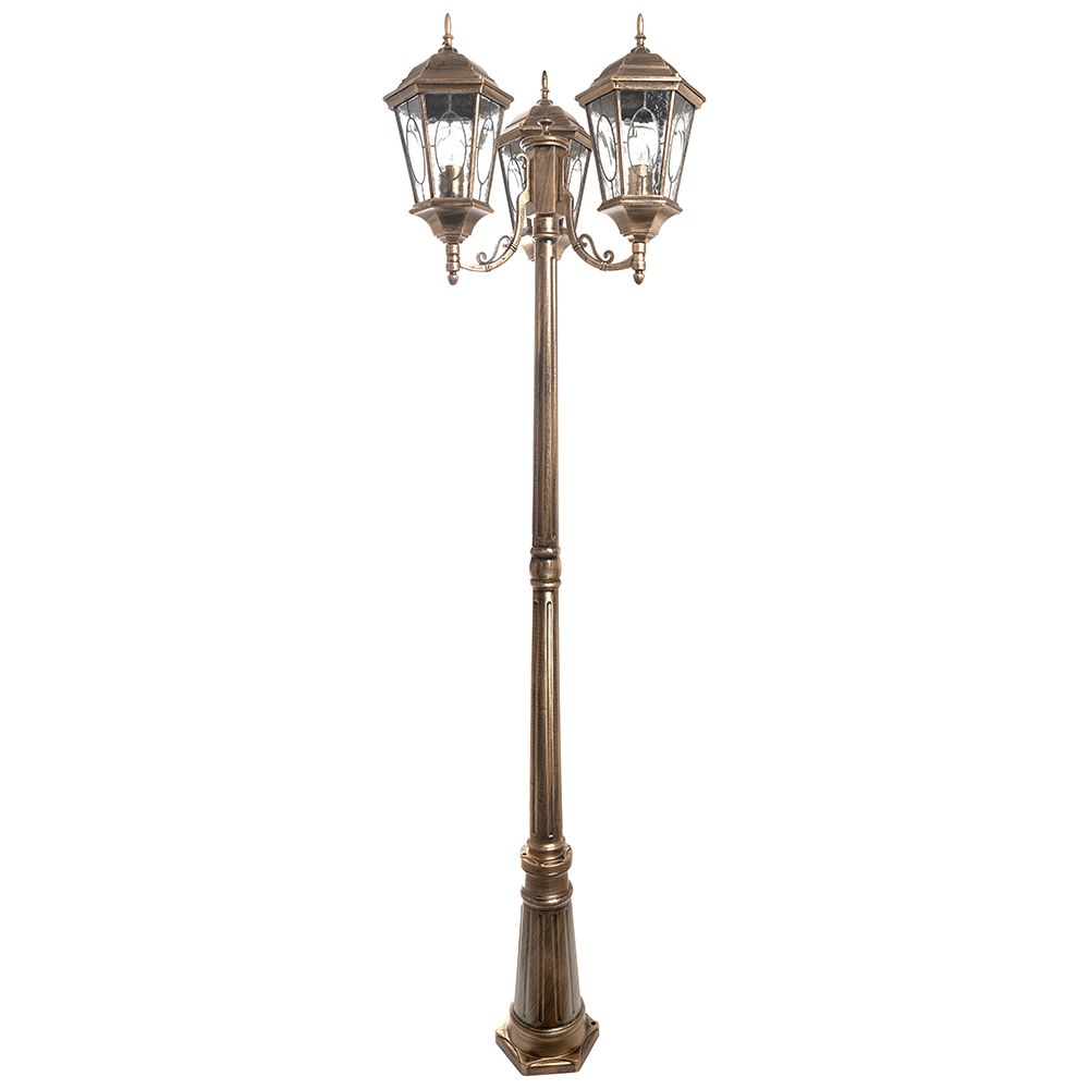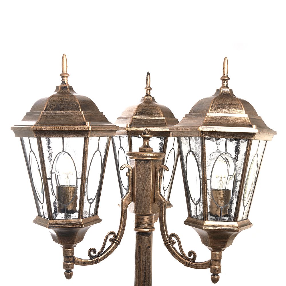 Светильник садово-парковый, серии «Рим», (НТУ) FERON PL158 60W, E27, 230V, IP44, цвет черное золото, 6-и гранник, столб, 630*630*2200мм
