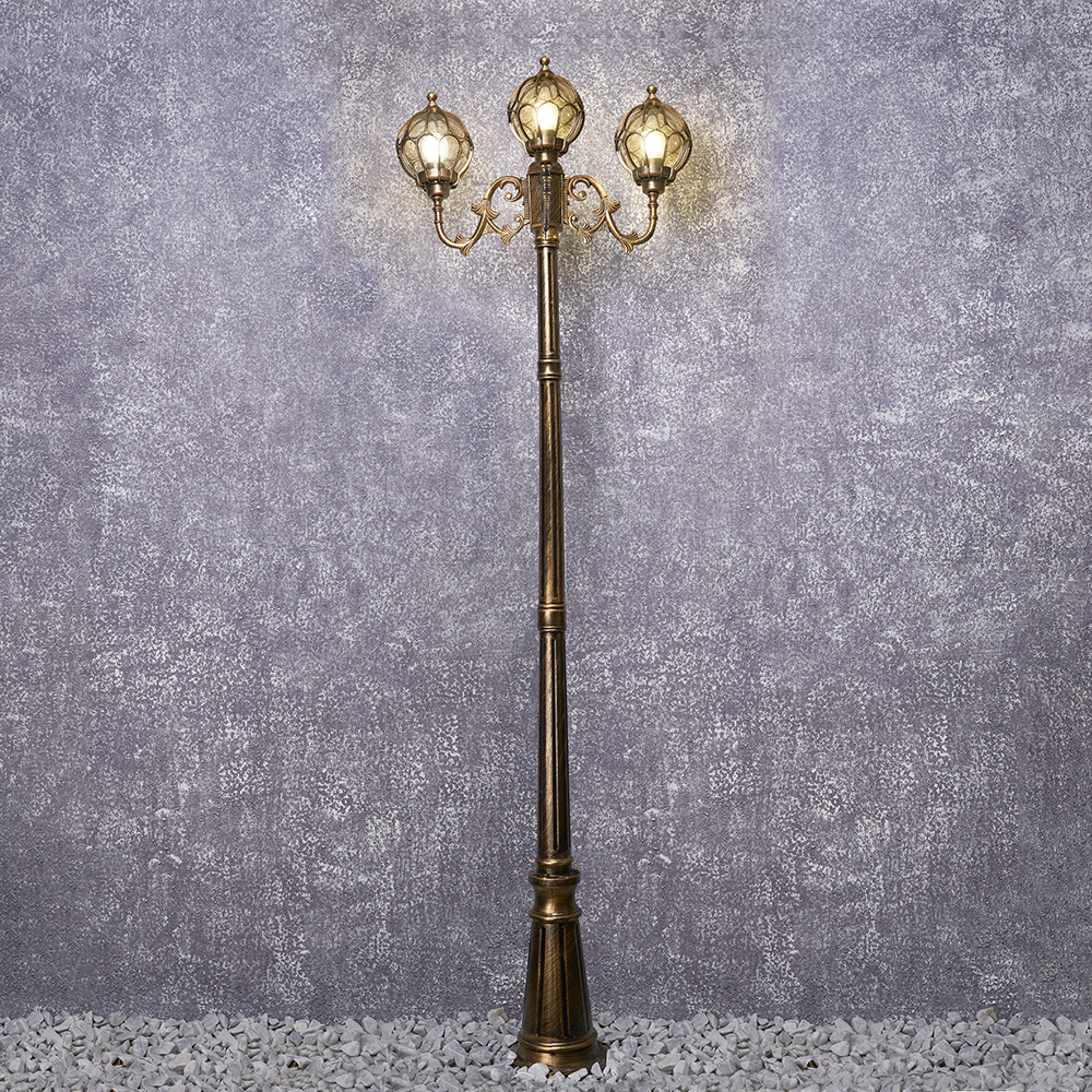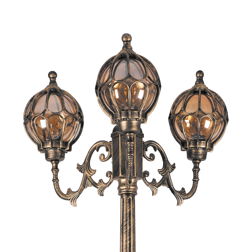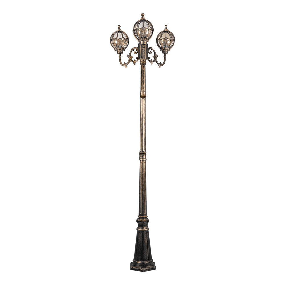 Светильник садово-парковый, серии «Версаль», (НТУ) FERON PL3709 60W, E27, 230V, IP44, цвет черное золото, шар, столб, 560*560*2200мм