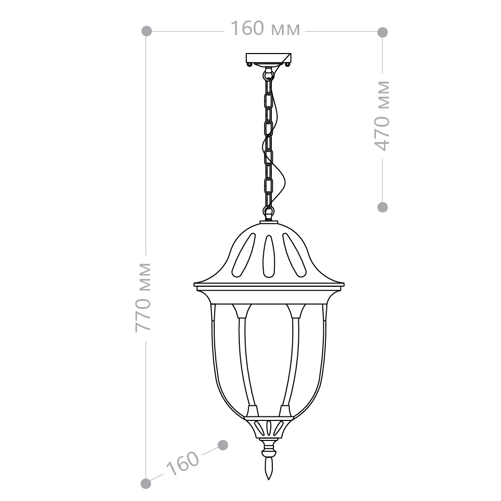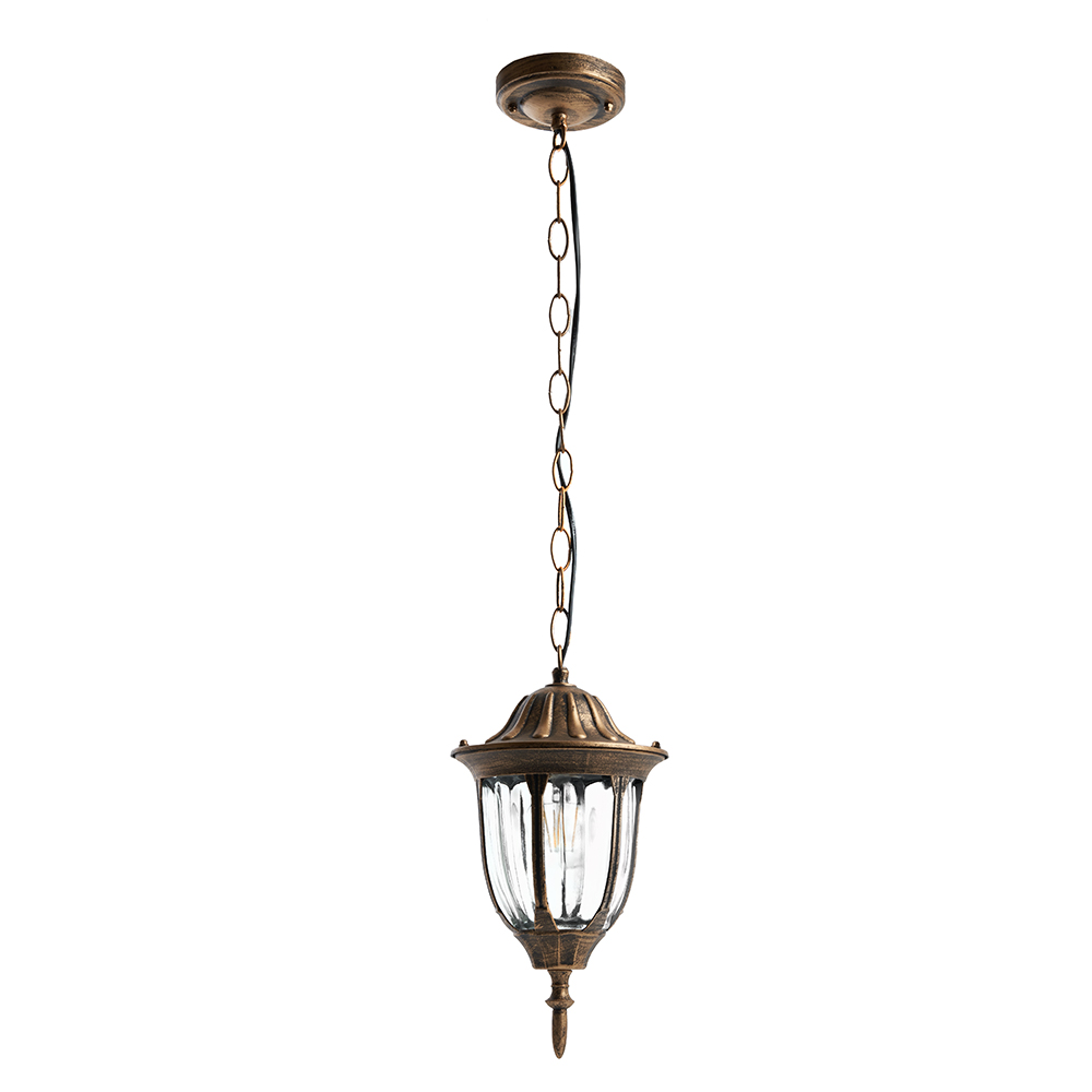 Светильник садово-парковый, серии «Белладжо», (НСУ) FERON PL6305 60W, E27, 230V, IP44, цвет черное золото, 6-и гранник, на цепочке, 160*160*770мм