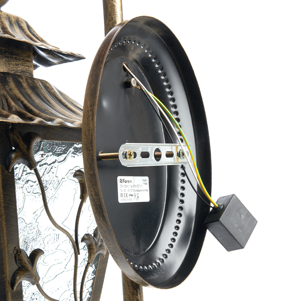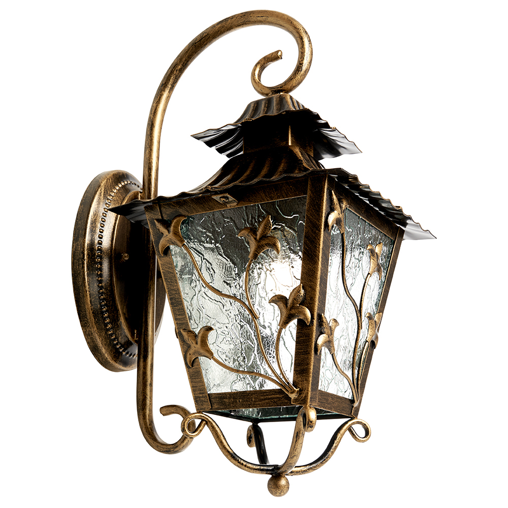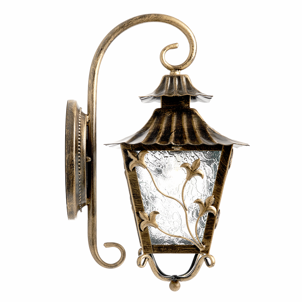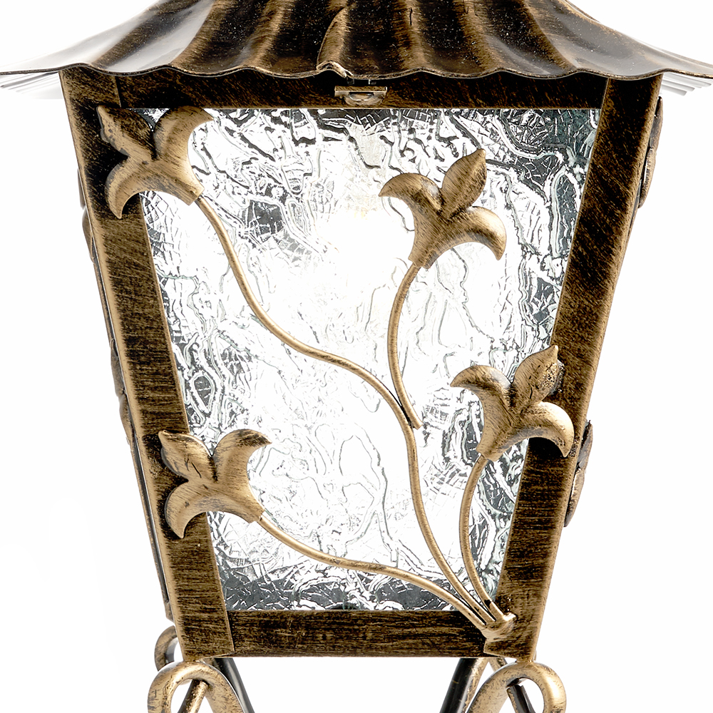 Светильник садово-парковый, серии «Палермо», (НБУ) FERON PL631 60W, E27, 230V, IP44, цвет черное золото, 4-х гранник, на стену вниз, 224*290*480мм