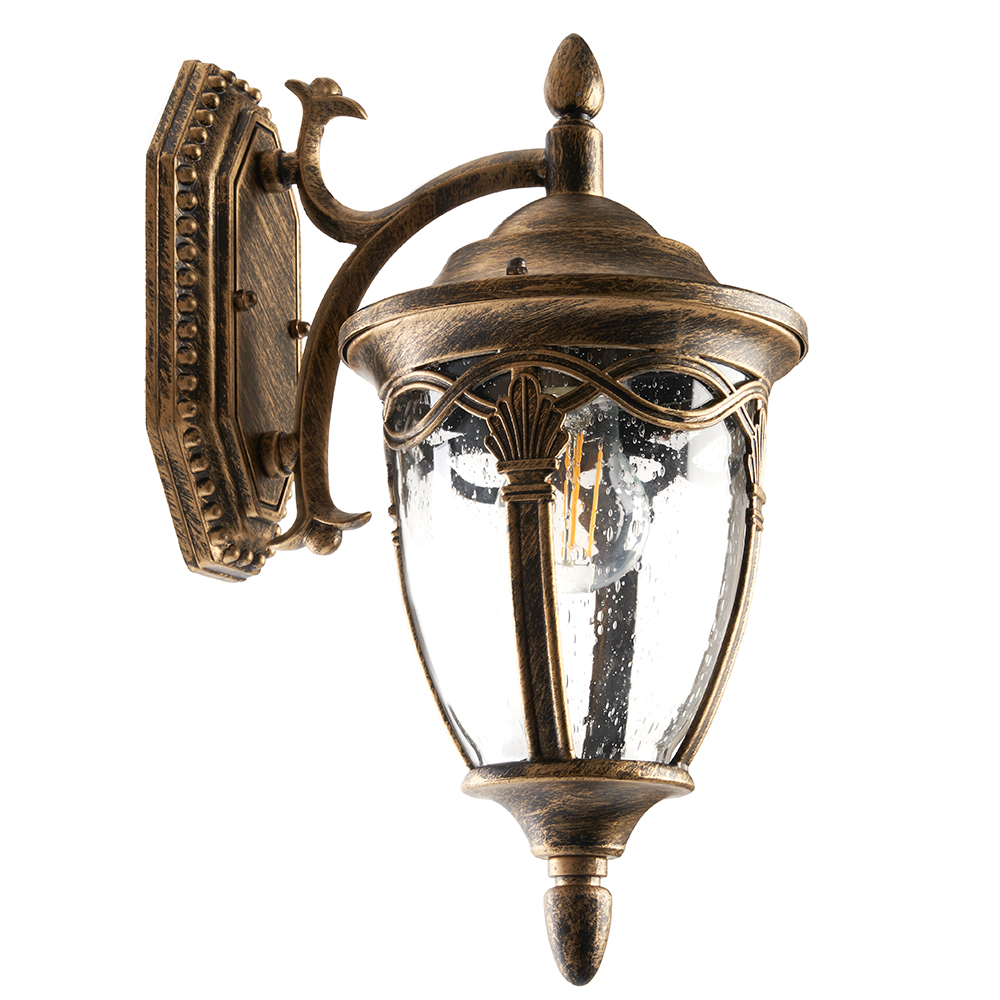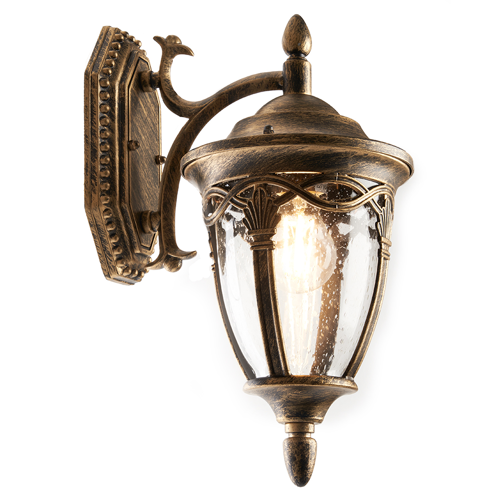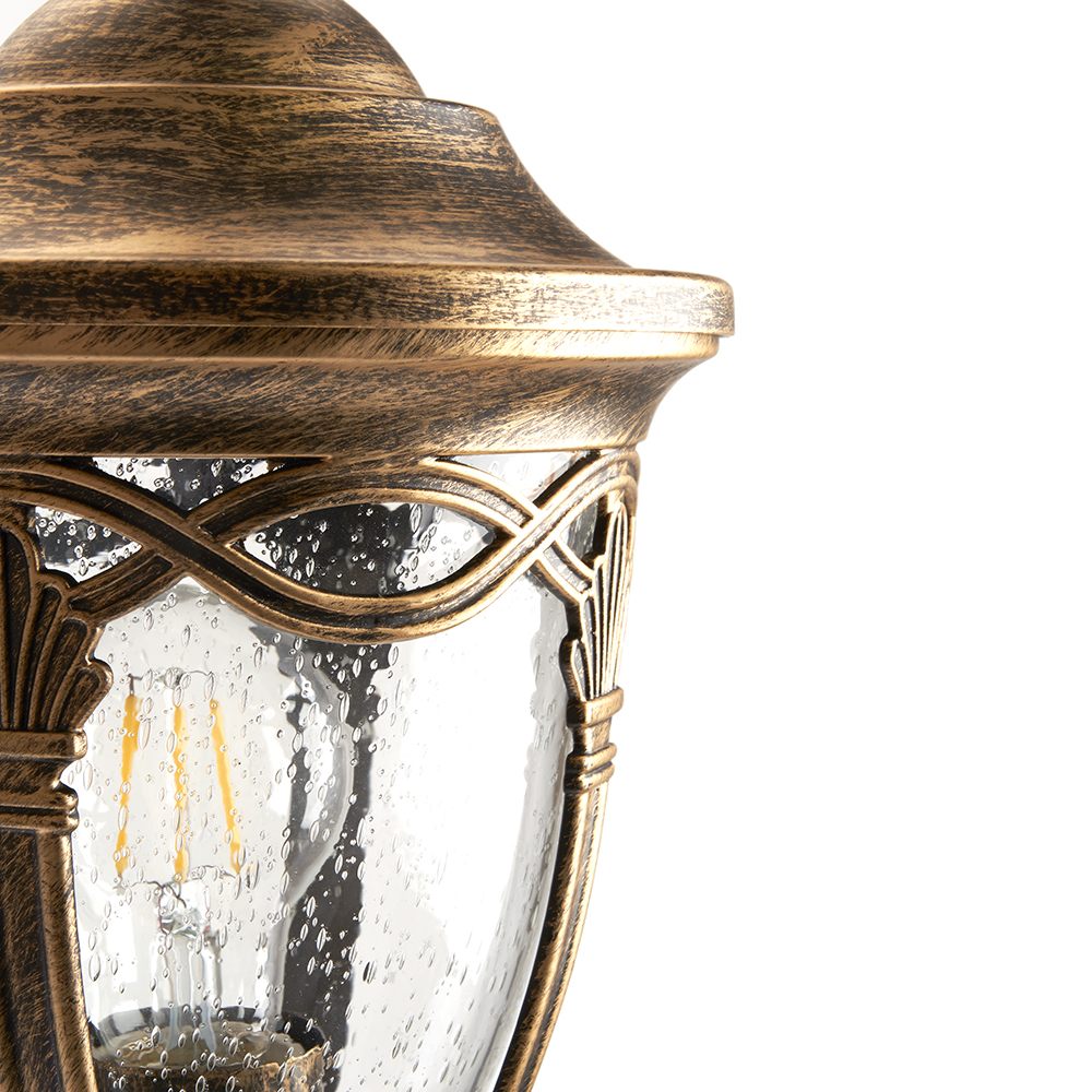 Светильник садово-парковый, серии «Будапешт», (НБУ) FERON PL681 60W, E27, 230V, IP44, цвет черное золото, на стену вниз, 250*180*370мм