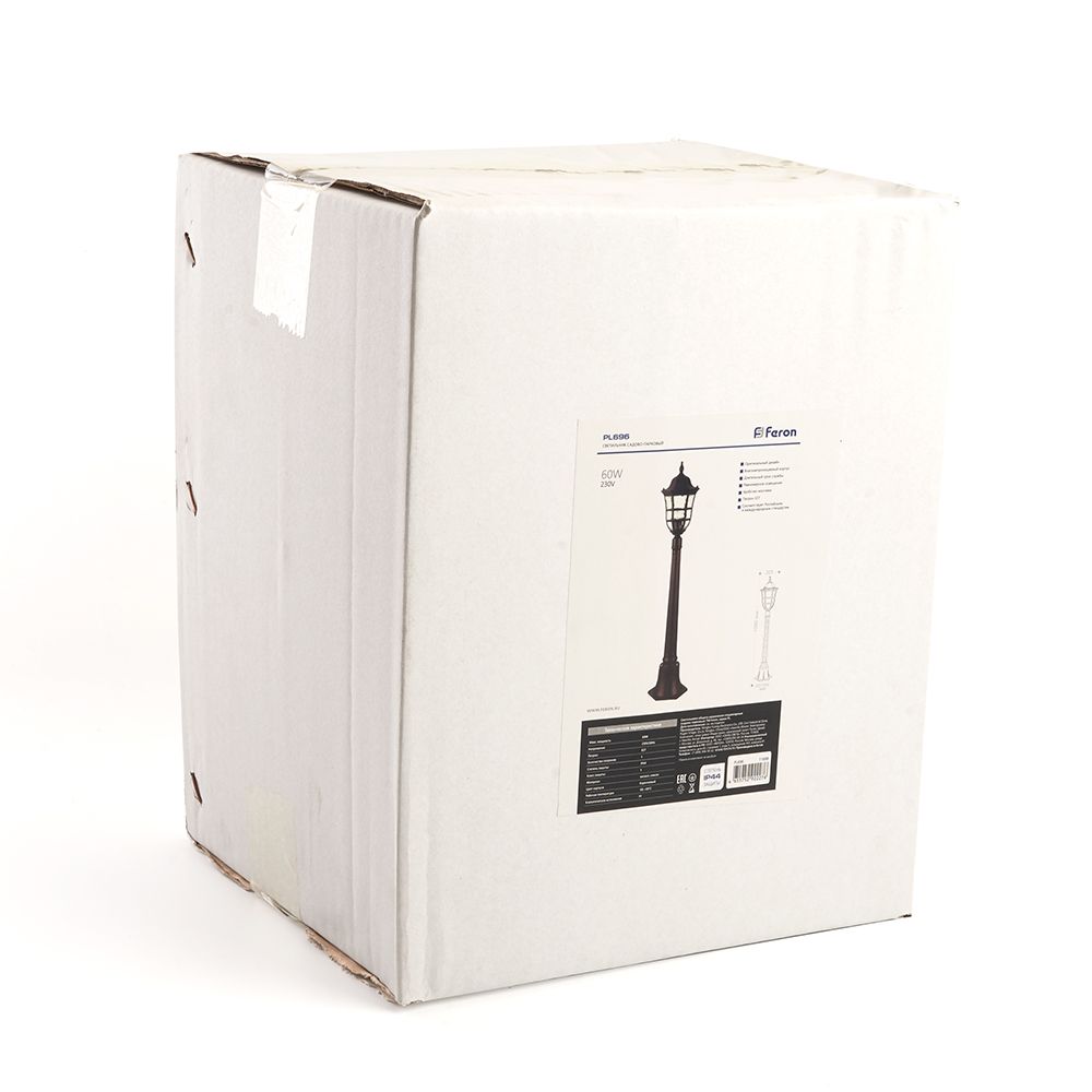 Светильник садово-парковый, серии «Варшава», (НТУ) FERON PL696 60W, E27, 230V, IP44, цвет коричневый, столб, 205*205*1080мм