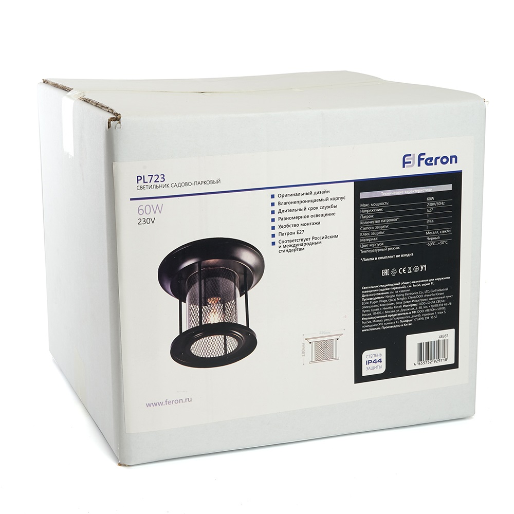 Светильник садово-парковый, серии «Бордо», (НБУ) FERON PL723 60W, E27, 230V, IP44, цвет черный, цилиндр, накладной, 220*220*180мм