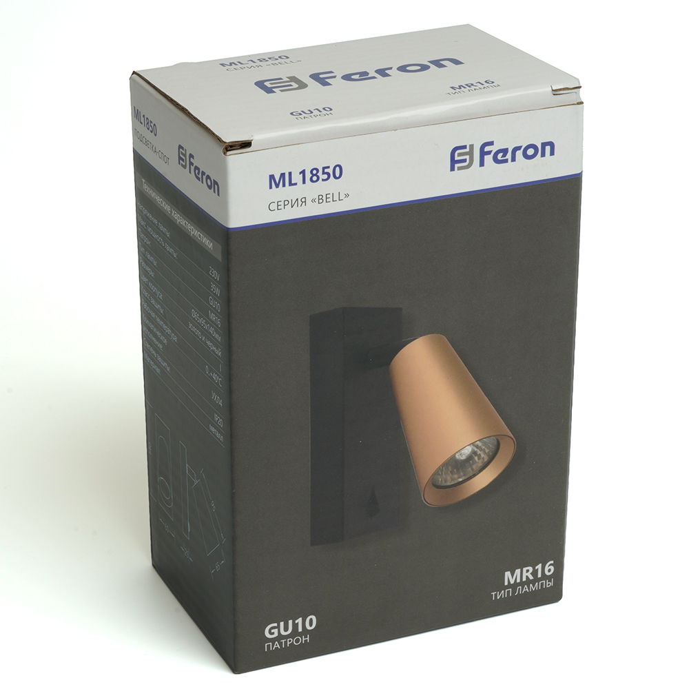 Подсветка настенная GU10 (с выключателем) FERON ML185 золото и черный, 35W, 230V, корпус металл, IP20, 65*60*140мм,