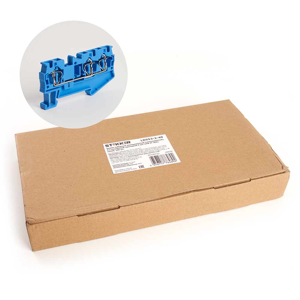 LD553-2-40 ЗНИ Зажим пружинный, 3-проводной проходной 4.0 мм² (JXB ST 4), синий