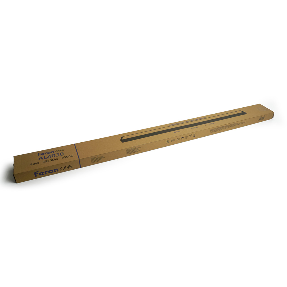 Светильник линейный светодиодный, (ДПО) FERON AL4030, 42W, 6500К (дневной), 165-265V, 3360Lm, IP20, цвет черный, корпус сталь, рассеиватель пластик, 1200*100*35 мм