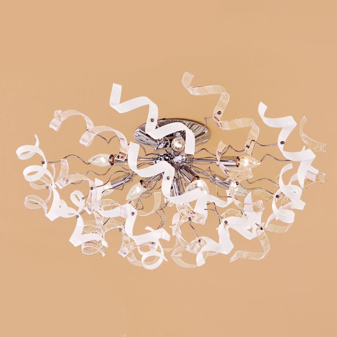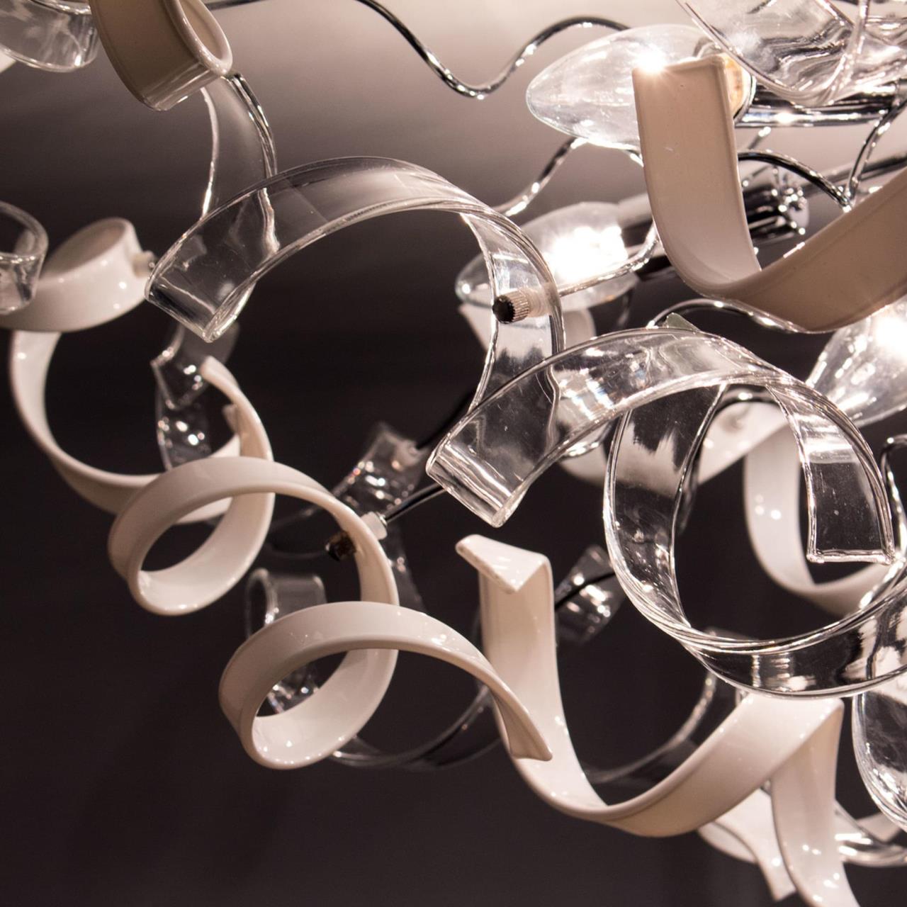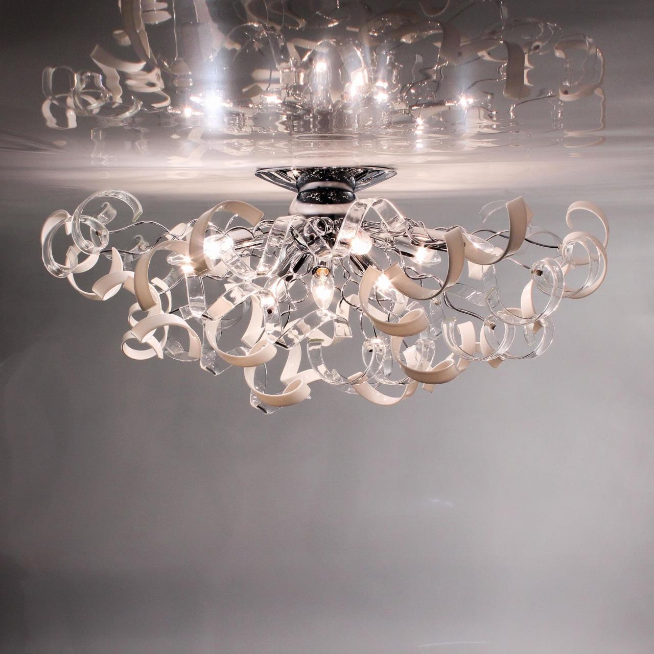 Дизайнерская коллекция потолочных люстр Рандом от компании Citilux покорила множество наших покупателей своей неординарностью. Говорящее название линейки, как ничто иное, характеризует своеобразность моделей, и неограниченные дизайнерские возможности. Множество поворотных стеклянных элементов, в виде игривых завитушек позволит вам придать светильнику свой неповторимый дизайн, а глянцевое, хромированное основание станет своеобразным отражателем светового потока на вашем потолке. Великолепная модель на девять рожков, разработанная нами специально для больших помещений, и украшенная комбинацией из прозрачных деталей и стеклянных элементов белого, глянцевого цвета, сможет волшебным образом преобразить ваше пространство. Такой светильник станет не только изящным дополнением в интерьере, но и полноценно осветит помещения площадью до 26-ти квадратных метров.