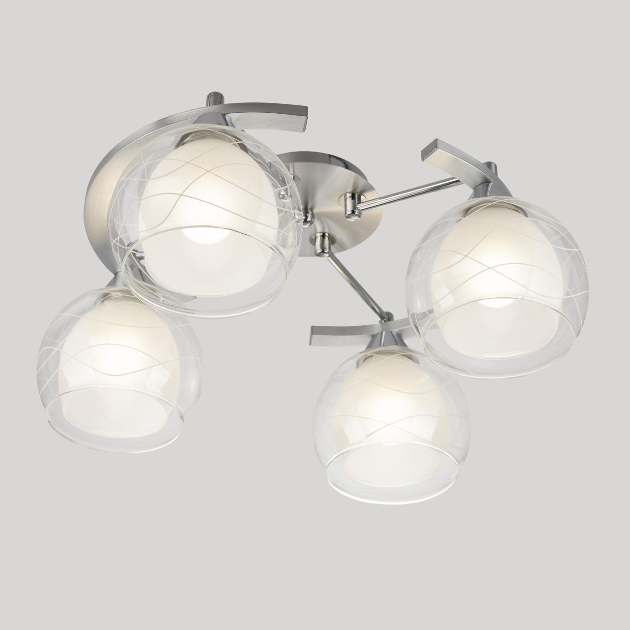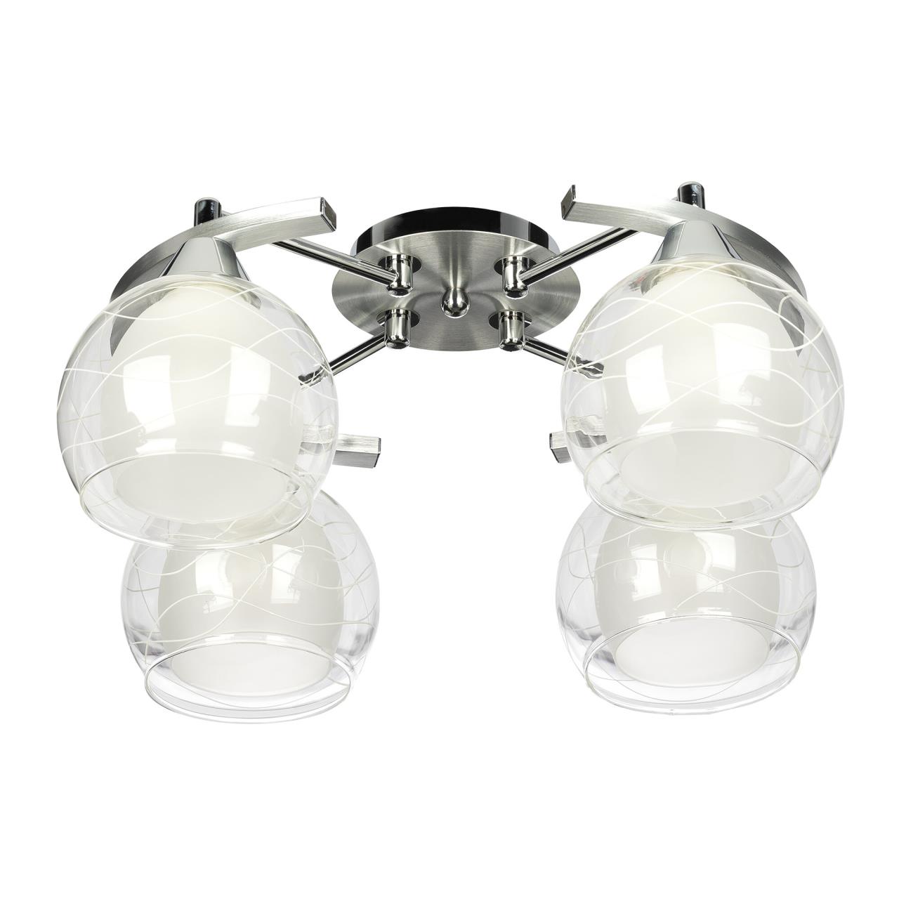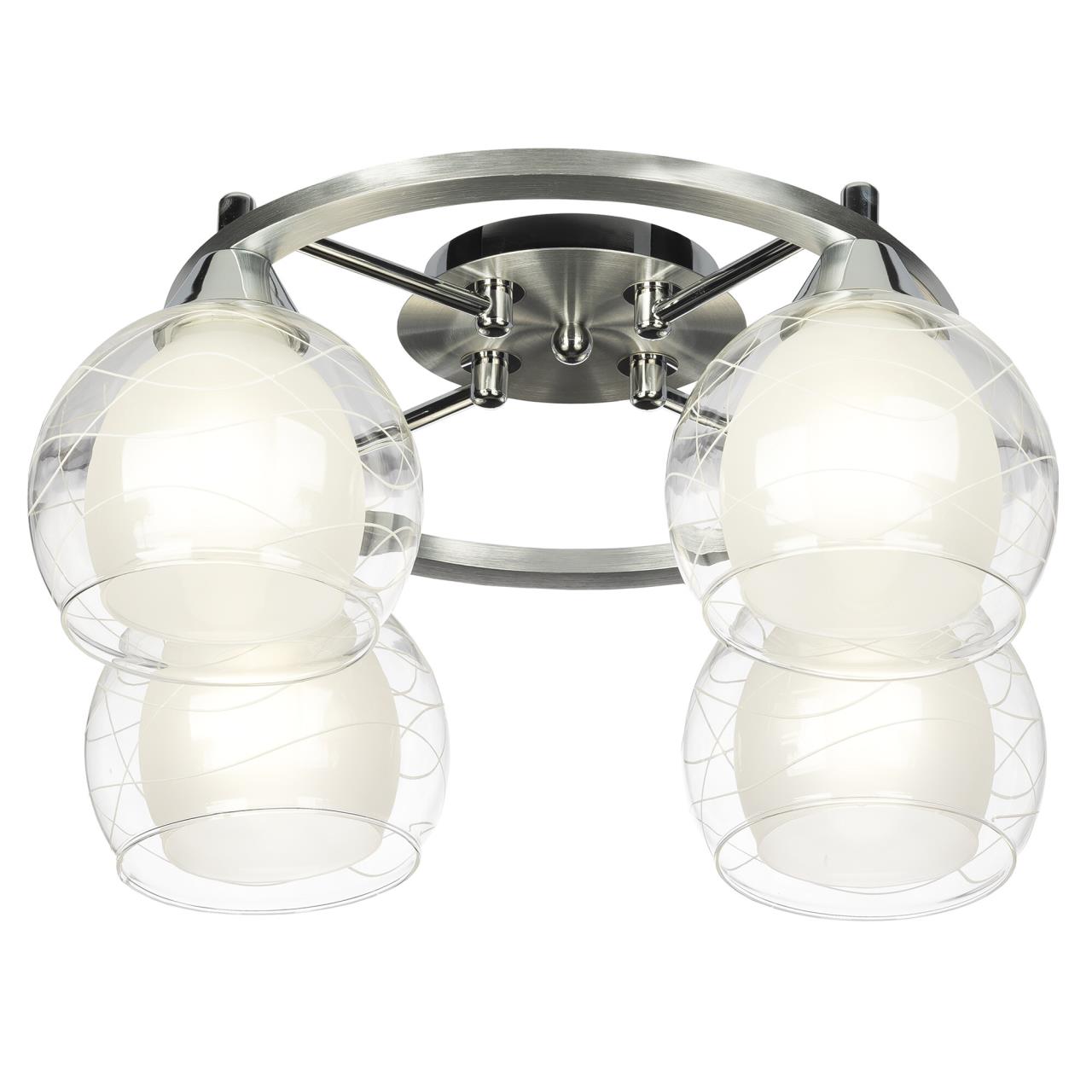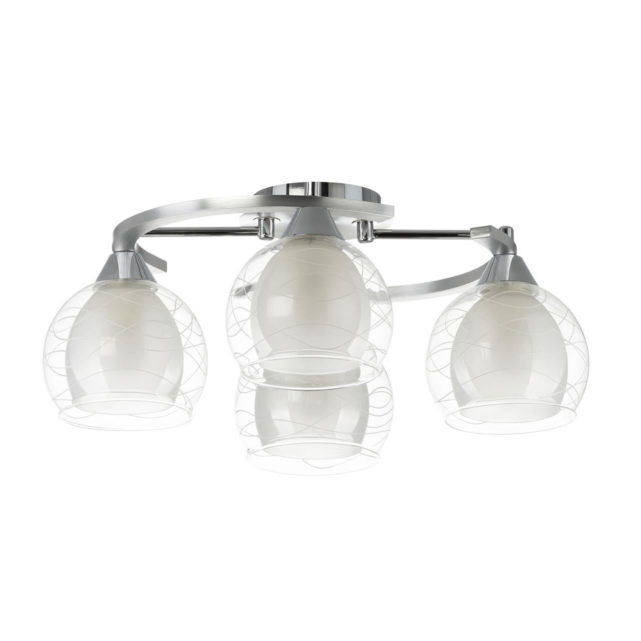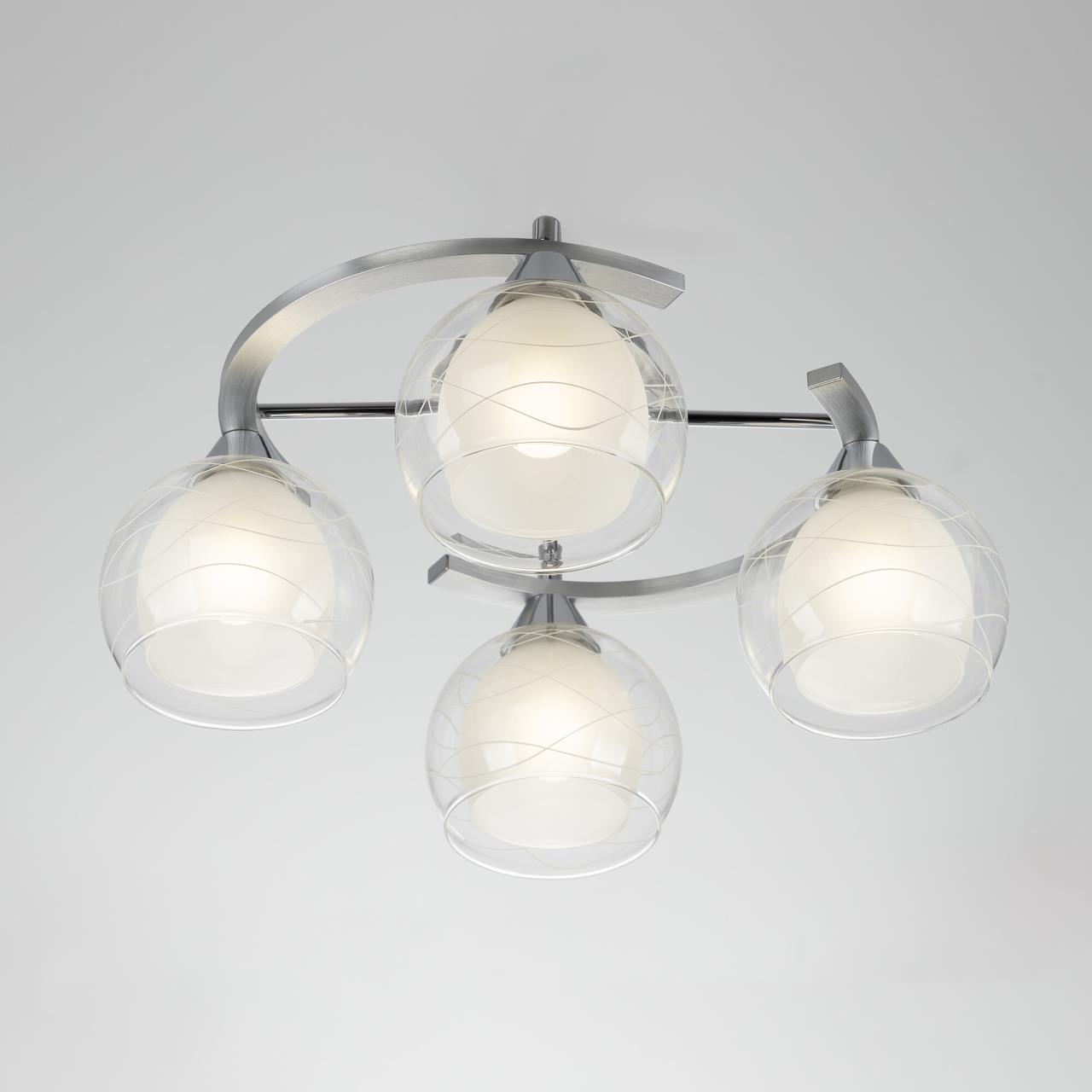 Потолочные светильники серии «Буги» выделяется интересным дизайном в стиле модерн. Люстры сделаны из легкого метала и интересными стеклянными двойными плафонами. Внешняя сторона плафона прозрачная с дизайнерским узором, а внутренняя полупрозрачная. За счёт полупрозрачного плафона свет в помещении получается очень яркий, равномерно рассеянный, но вместе с тем мягкий, приятный для зрения. Арматура модели на четыре рожка с завода в упаковке собрана и скоммутирована на двойной выключатель. Деление осуществлено пополам, с одной клавиши будет включаться два плафона, со второй ещё два. Подключение произведено через один плафон. Люстры производятся в двух цветах: белый плюс хром, идеальное решение для нежных и светлых интерьеров, и алюминий плюс хром, который лучше сочетается с современными дизайнами. Крепятся люстры под потолком тем самым они не занимают место и прекрасно подходят к помещениям с небольшой высотой потолка. Патроны выполнены из термостойких материалов, выдерживают лампы накаливания до 75 ватт включительно, а энергосберегающие, или светодиодные лампы можно использовать любой яркости, что позволит вам осветить большие площади. Площадь освещения моделей на четыре рожка до 14 квадратных метров.