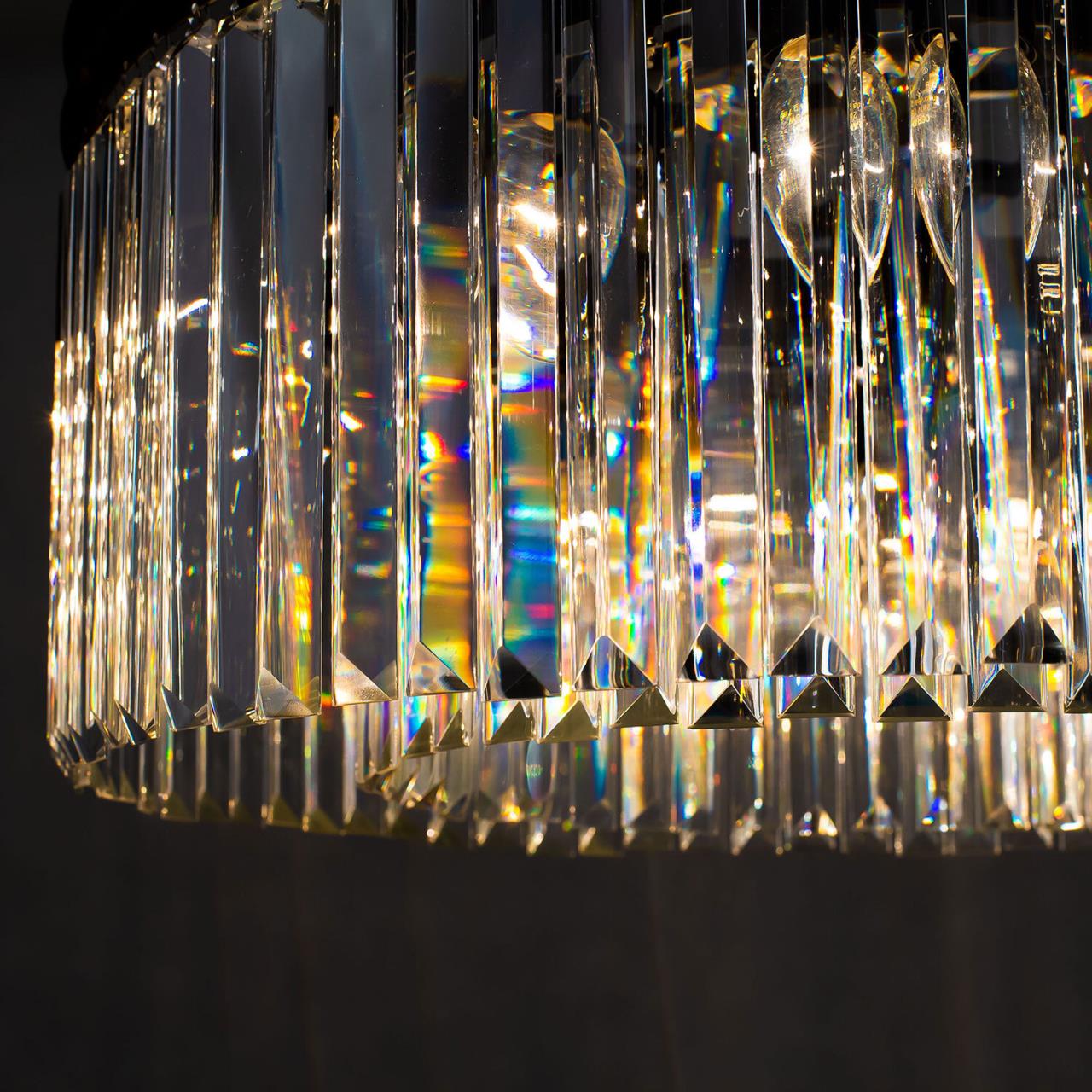 Само словосочетание «хрустальная люстра» веет признаком благополучия и достатка в доме. Современные модели хрустальных люстр коллекции Мартин принесут в жилище именно эти ощущения, а волшебная игра света на хрустальных подвесках всегда будет радовать вас и ваших гостей. Новая модель Мартин создана из хрусталя с минимальным количеством граней, такую огранку хрусталя принято называть – Призма. Это решение позволят защитить глаза от свечения открытых ламп, но ни в коем случае не умаляет способностей преломления света хрустальными элементами светильника. Отражённый свет в помещении заставит сиять вашу люстру всеми возможными цветами, и удивит неповторимым узором на поверхностях вашего интерьера. Люстра на 12 рожков с регулируемой высотой и возможностью потолочного крепления, способна осветить от 21-го-и до 30-ти квадратных метров.