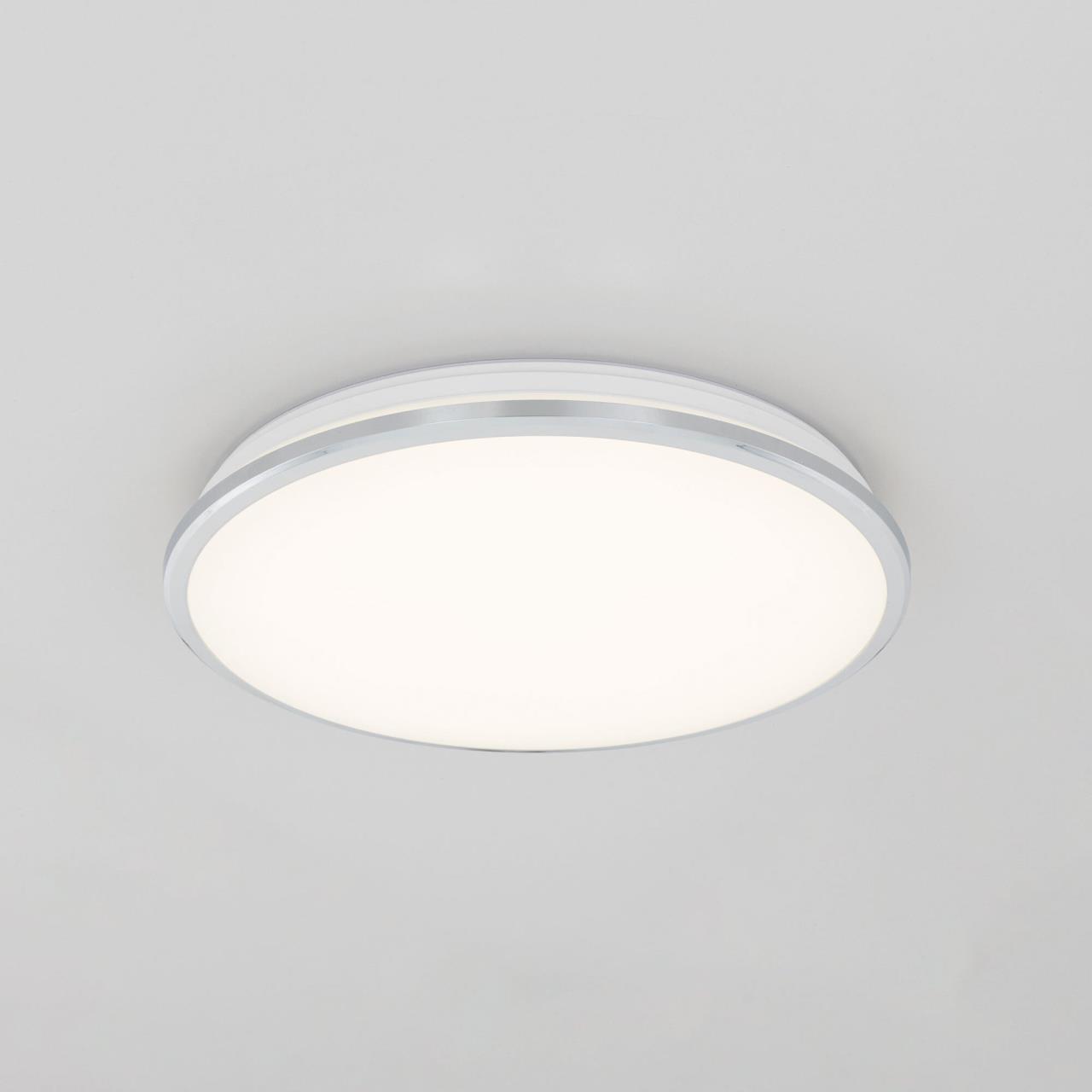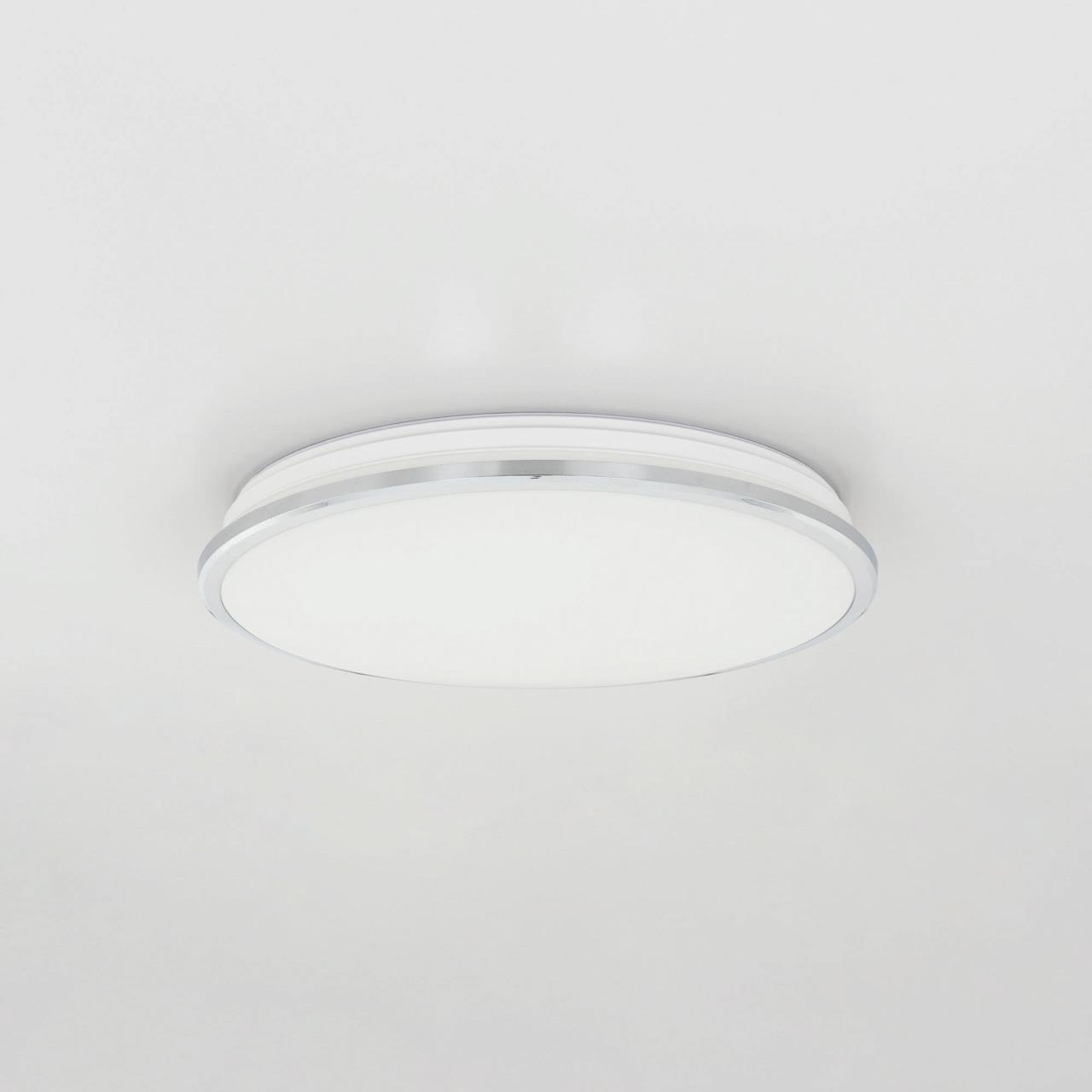 Диаметр 38 см, Высота 6.5 см, Светодиодный светильник, Уровень мощности 100-50-10% управляется выключателем, Влагозащита IP54