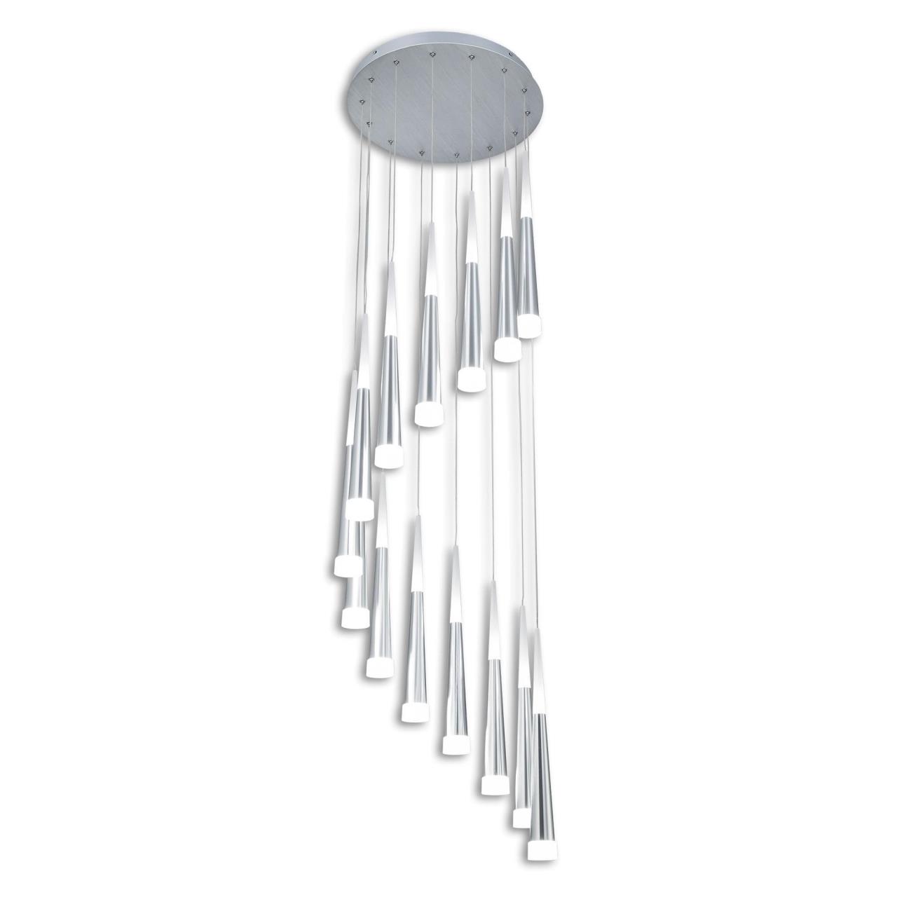 Шикарная подвесная светодиодная слюстра CL227140 с 14-ю конусными плафонами цвета хром из коллекции «Вегас» общей мощностью в 98 Вт.