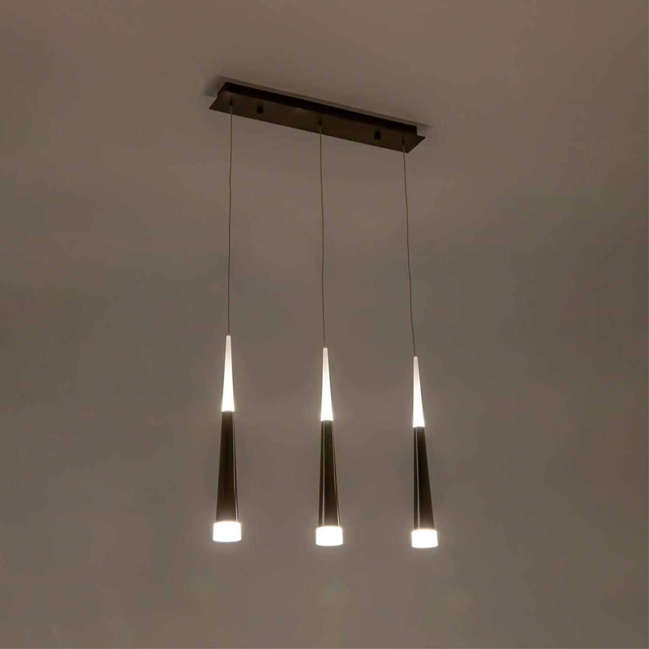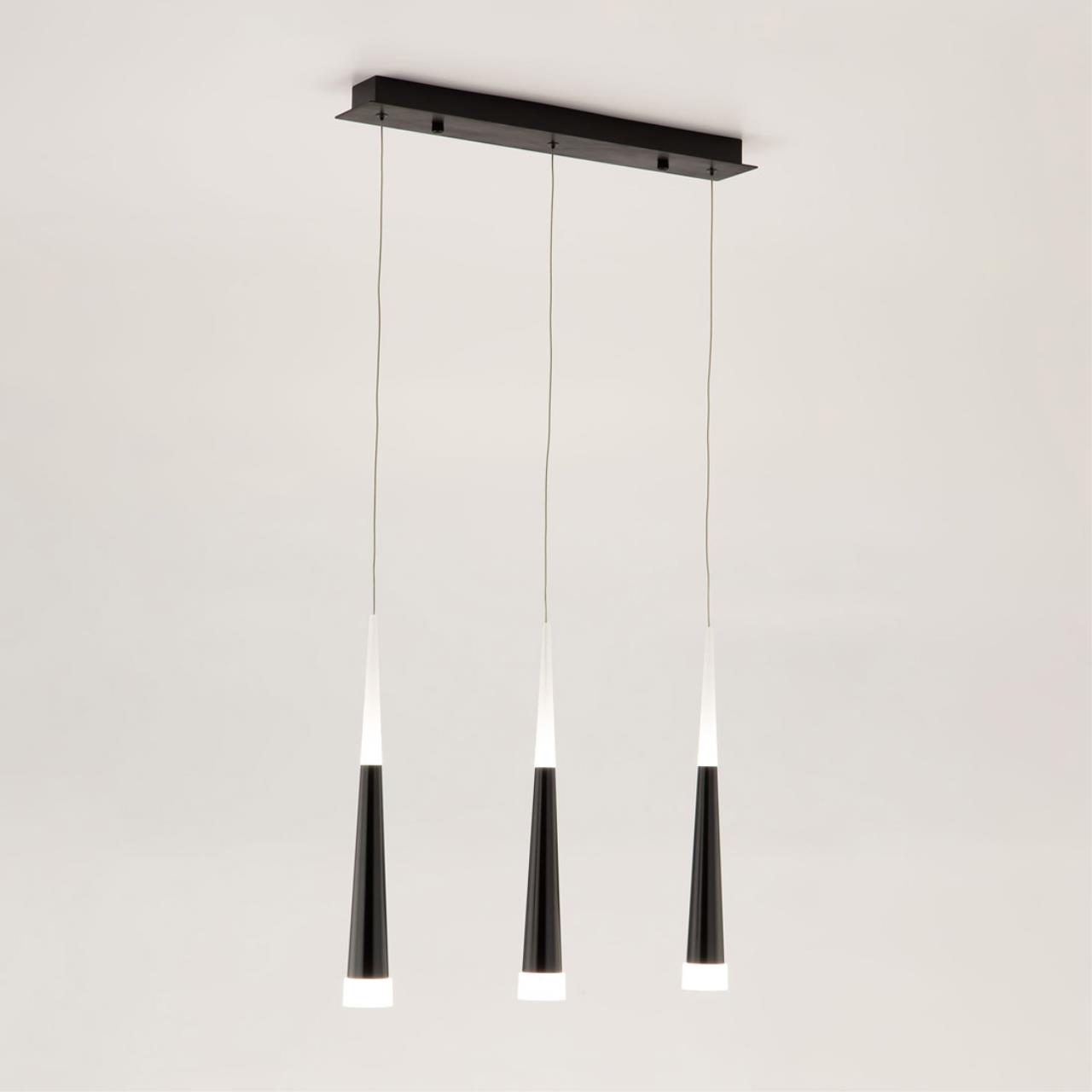 Эффектная модель светодиодного подвеса CL227031 с тремя черными конусными плафонами из коллекции «Вегас» общей мощностью в 21 Вт. Все подвесы новой коллекции «Вегас» излучают оптимальный для человеческих глаз, мягкий тёплый (3000К) свет, и разработаны в нескольких вариантах размера, от аккуратных одинарных до огромных и шикарных шеснадцатирожковых. Мощность каждого рожка в диодном эквиваленте 7 Вт, что соответствует приблизительно шестидесяти ваттной лампе накаливания. Данная модель светильника, с тремя плафонами, способна осветить помещение площадью от 4,5 до 7 квадратных метров. Внутри плафона подвеса стоят современные светодиоды, которые дают яркий и в тоже время рассеянный свет. Высота каждого элемента подвеса независимо регулируется, позволяя придавать светильнику индивидуальный дизайн. Для вашего удобства при выборе мы создали коллекцию в 4-х цветах, которые сейчас особенно в тренде у дизайнеров интерьера, это – строгий чёрный, мягкий кофейный, элегантный алюминий и волнующий тёплый шампань. Серия «Вегас» отлично подходит для роскошных интерьеров с высокими потолками или для лестничных пролетов, ее подвесами можно украсить: кухню, прихожую, коридор, кабинет офиса, а также интерьеры кафе и ресторанов соответствующей стилистики.