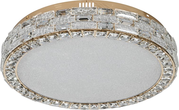 Эксклюзивный потолочный светильник серии Gabbana выполнен из нержавеющей стали золотого цвета и декорирован текстурным хрусталем высшей категории. Модель комплектуется пультом дистанционного управления 2,4G и драйвером высокого качества европейского стандарта T?V, обеспечивающим переключение трех режимов световой температуры и диммирование.
