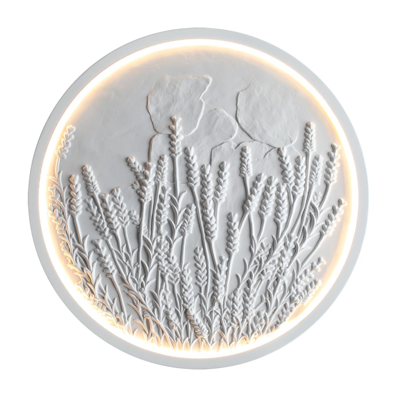 Lavanda — светильник диаметром 400 мм, который был вдохновлён популярными в интерьерах ботаническими барельефами. Мягкая подсветка подчёркивает каждую травинку, создавая живую и тактильную атмосферу.