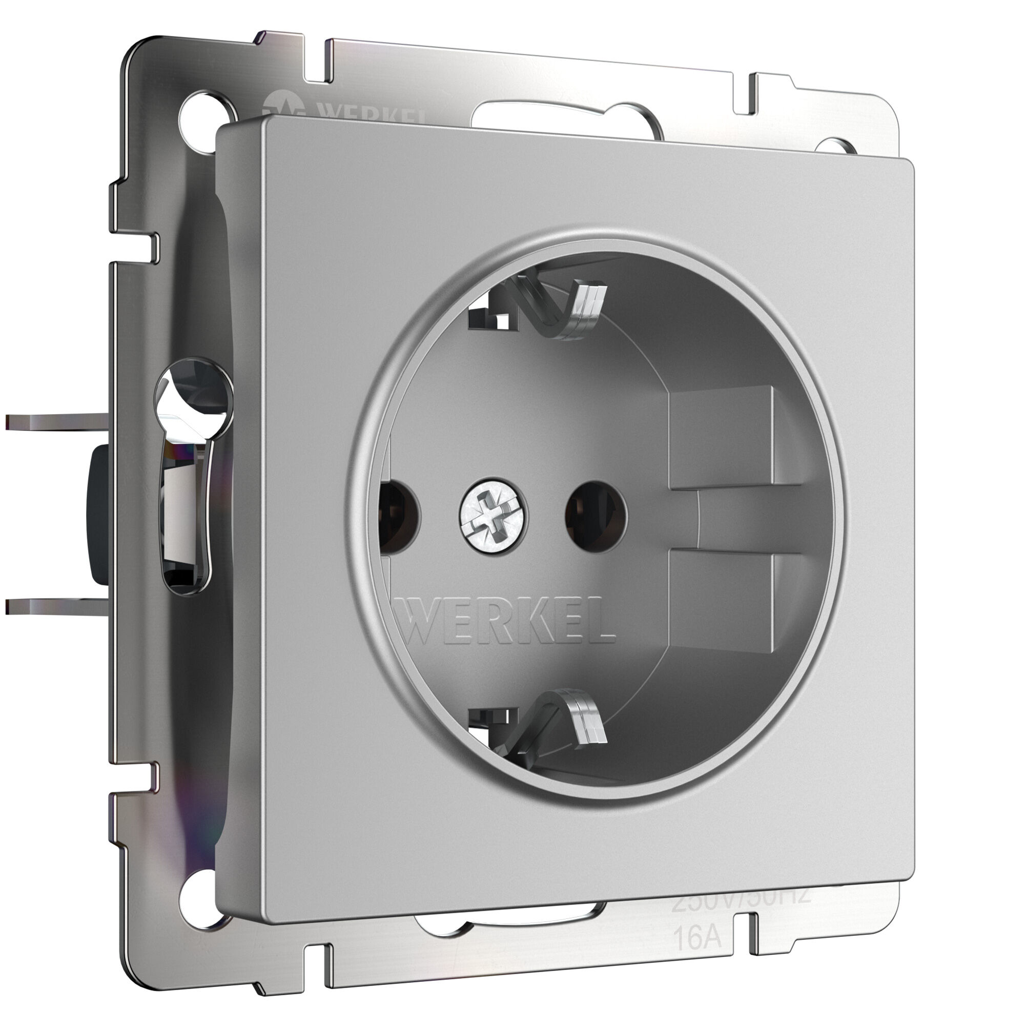 Внешняя лицевая панель выполнена из высококачественного поликарбоната, устойчивого к высоким температурам. Встраиваемая розетка с заземлением совместима со всеми рамками из коллекций Werkel™, характеризуется удобством использования и обеспечивает надежный контакт.