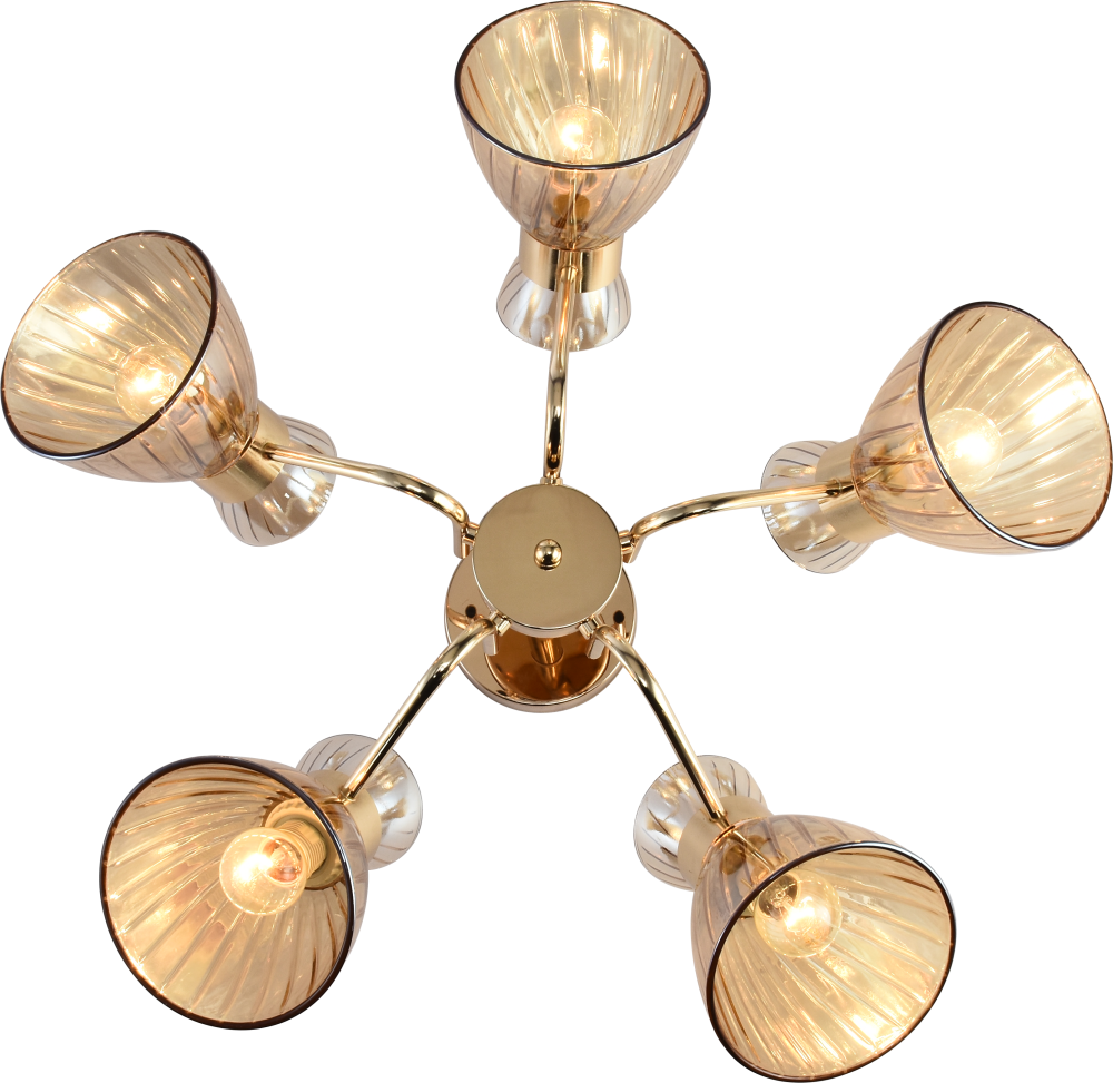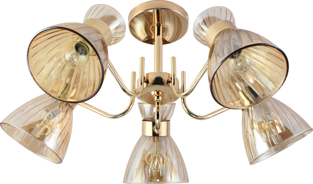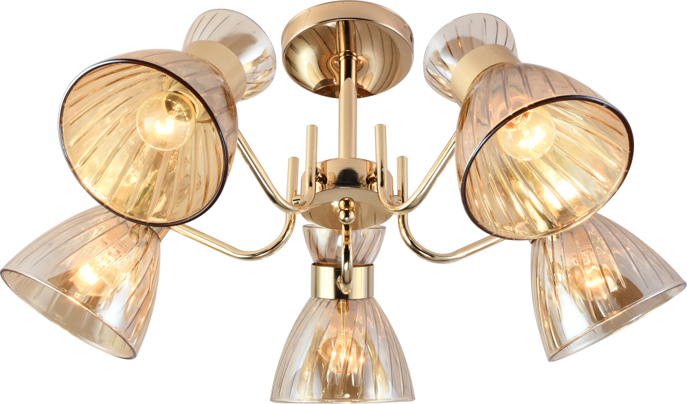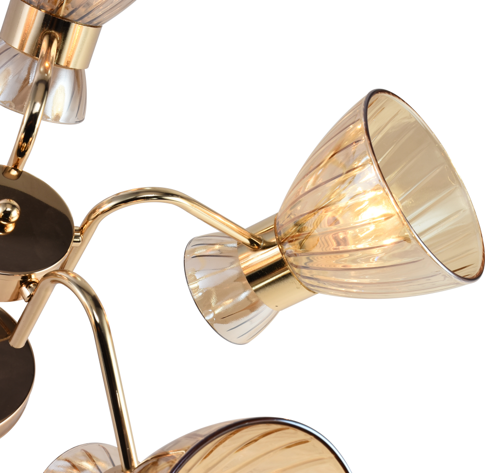 Серия золотых светильников с тонированными плафонами — стильное и универсальное решение для современного интерьера. В коллекции представлены люстры на 3 и 5 ламп, а также бра с удобным выключателем-цепочкой. Подходят лампы с цоколем E27, мощностью до 60 Вт (лампы в комплект не входят).