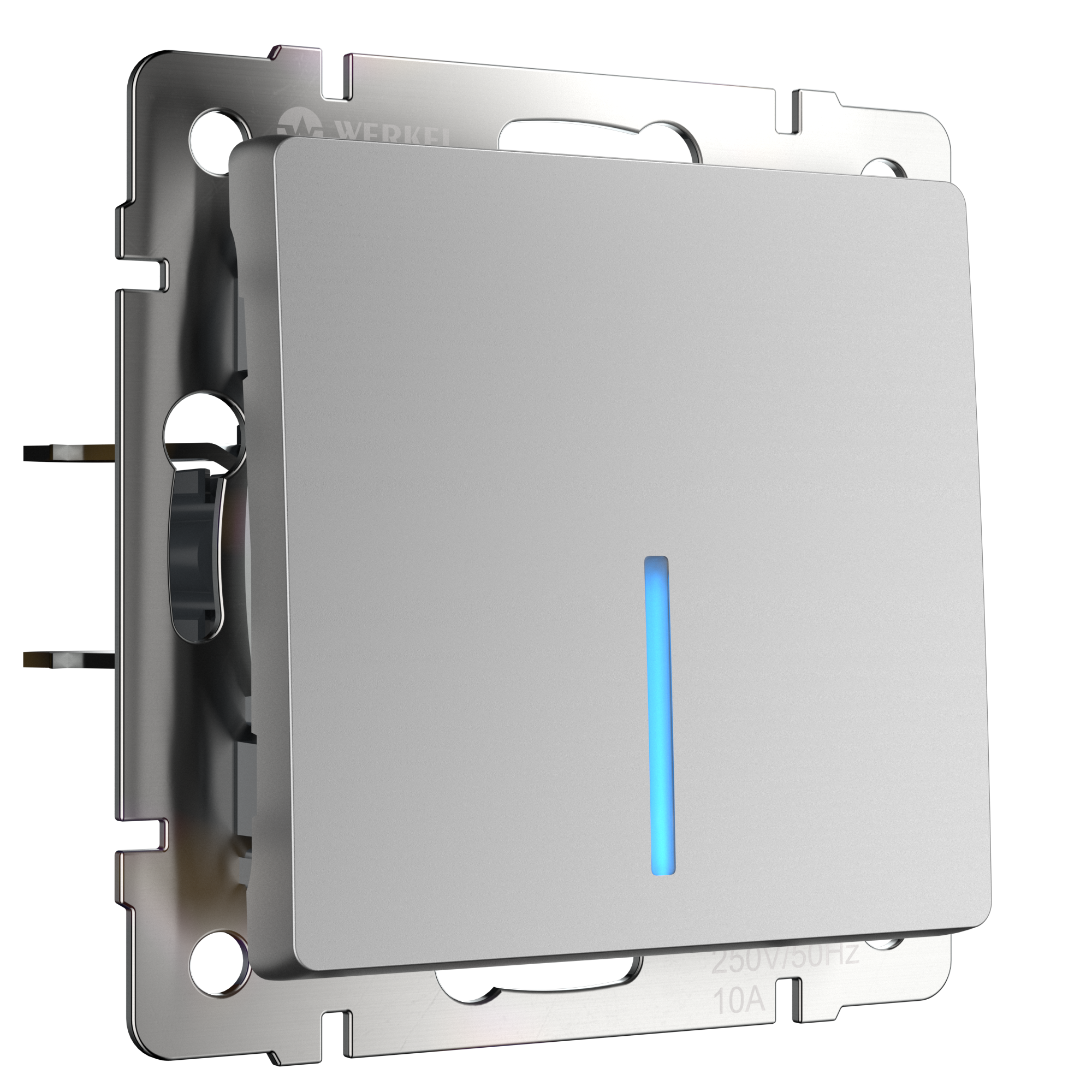 Подробнее о брендеВстраиваемый одноклавишный выключатель с LED подсветкой 10 А 250 В, 50 Гц W1110106 в серебряном цвете является важнейшим элементом любой домашней электросети, служащим для управления света. Приглушенное свечение светодиодов позволяет легко найти выключатель в темное время суток и помогает ориентироваться в квартире, доме или помещении. Выключатель представляет собой механизм нажимного типа, имеющий металлический суппорт и декоративные накладки.