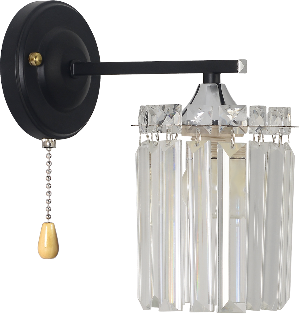 Коллекция черных светильников включает люстры на 3 и 6 рожков с цоколем E27 и бра с встроенным выключателем. Максимальная мощность лампы 60Вт (в комплект не входит). Плафоны из кристаллов создают утонченную атмосферу в интерьере.