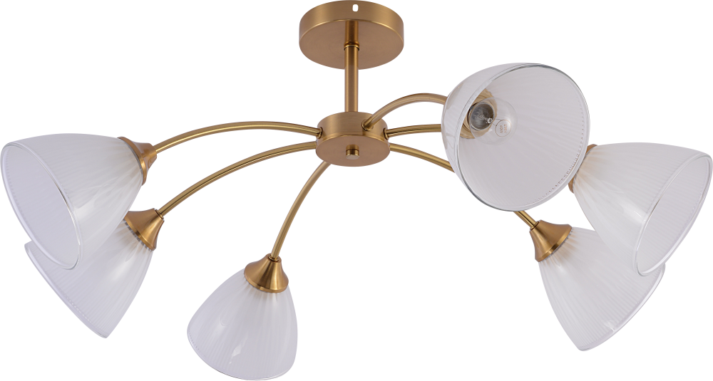 Коллекция светильников медного цвета включает люстры на 6 и 8 рожков с цоколем E27 и бра с встроенным выключателем. Максимальная мощность лампы 60Вт (в комплект не входит). Стильный и функциональный выбор для любого интерьера.