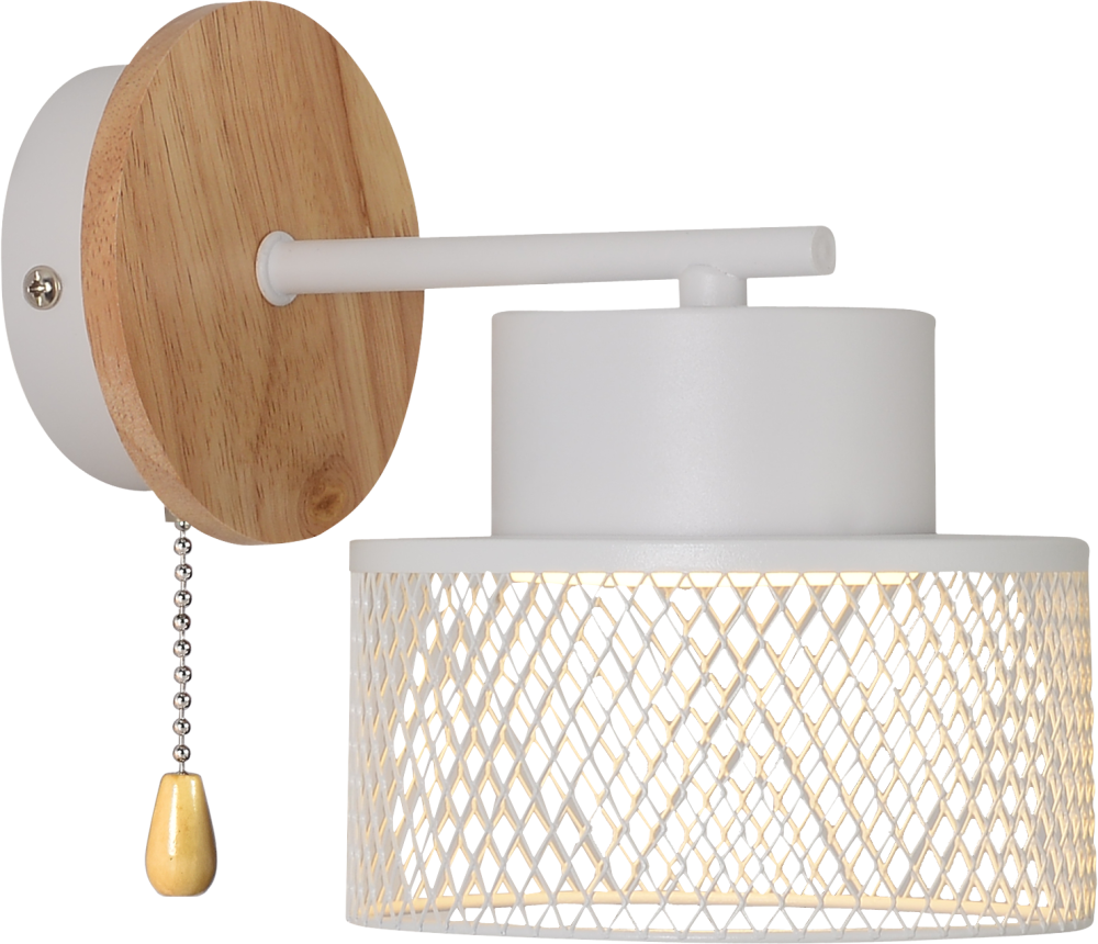 Белый настенный светильник с цоколем GX53 (мощность 15Вт) — стильное сочетание современного дизайна и природной текстуры. Сетчатые плафоны создают яркое освещение, а элементы натурального дерева добавляют уюта в атмосферу интерьера. Бра оснащено встроенным выключателем.