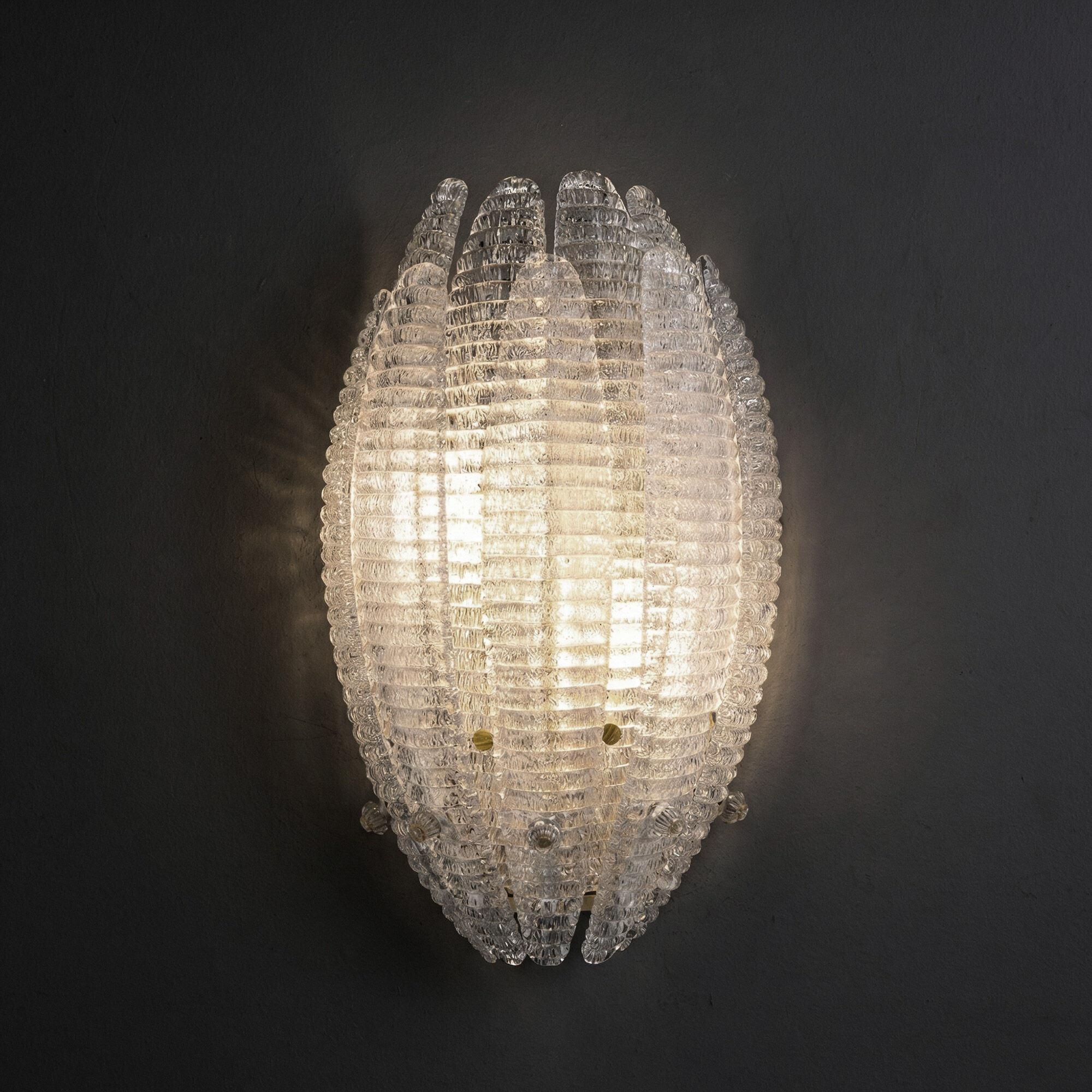 Тонкое стекло, словно лепестки живого цветка, бережно хранит внутри мерцание алмазной крошки. При включённом свете он оживает: тысячи крошечных граней вспыхивают, рассыпая по стенам причудливую игру бликов.