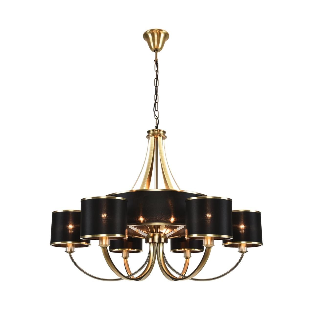 Респектабельная и утонченная линия DEMETRA не доминирует в пространстве, но задает тон, подчеркивая статусность интерьера. Черный цвет абажуров добавляет строгости, а металл цвета античная броназ — тепла и гостеприимства. Конструкция состоит из центрального стержня, плавно переходящего в разветвленную основу, которая поддерживает несколько рожков. В центральной части три незаметные лампы G9, которые наполняют теплым светом большой абажур. Внутри каждого малого абажура легко помещается лампа Е14. Форма симметрична, что создает ощущение гармонии и уравновешенности. Сочетание «теплого» металла и «холодного» черного текстиля создает выразительный эффект, делая люстру универсальной для разных интерьеров.