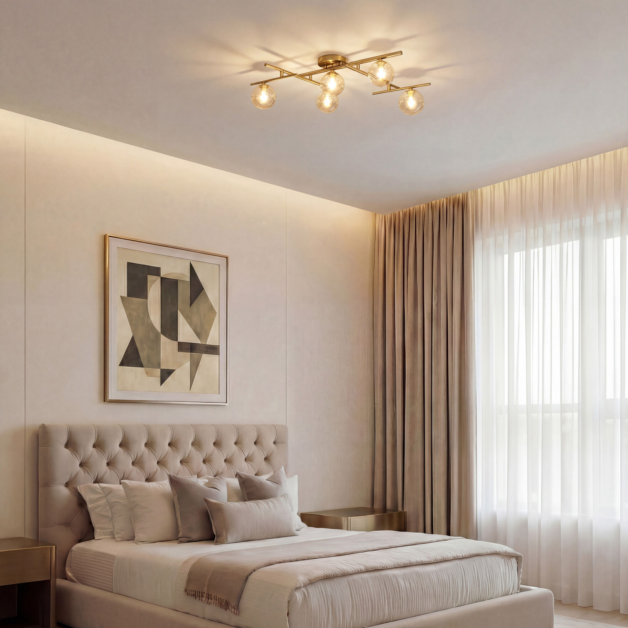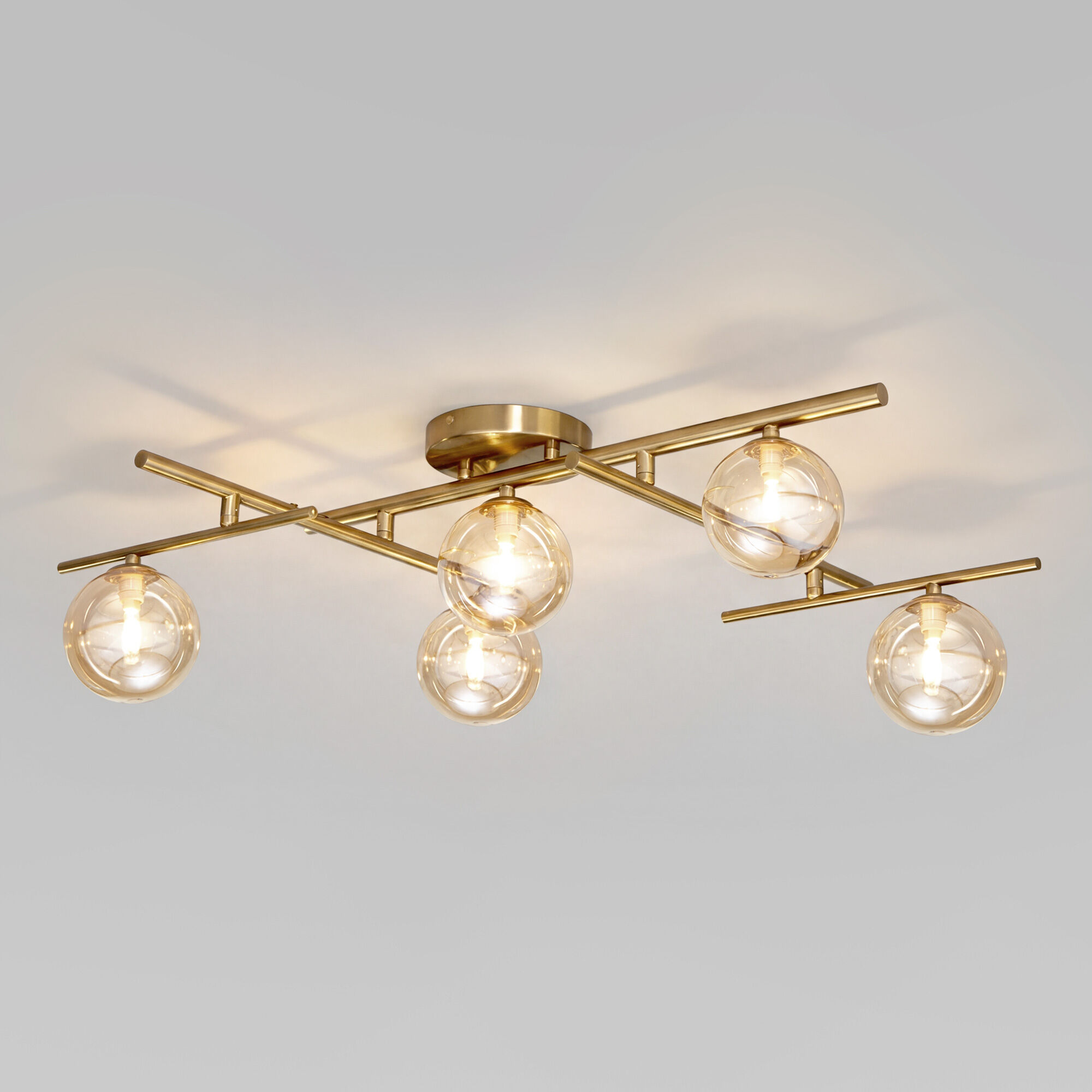 Потолочный светильник из коллекции Liana станет прекрасным дополнением к вашей гостиной, спальне или столовой. Геометрическая конструкция в сочетании со стеклянными янтарными плафонами создает современный и утонченный вид.Плафоны мягко рассеивают свет, создавая приятную и уютную атмосферу. Янтарный оттенок придает свету теплоту, делая его идеальным для расслабляющего вечера.
