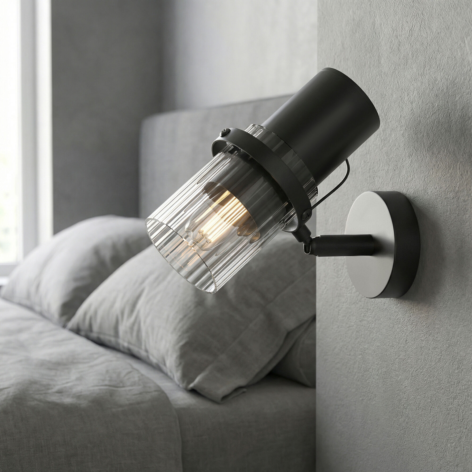 Настенный светильник со стеклянным плафоном из коллекции Megre оснащен поворотным механизмом. Благодаря своей уникальной конструкции, он позволяет свободно изменять угол наклона плафона, обеспечивая оптимальное распределение света в помещении. Настенный светильник из коллекции Megre идеально подойдет для зонирования пространства и выделения важных элементов дизайна. Плафон выполнен из фактурного стекла, придающий светильнику особый шарм. Структура стекла мягко рассеивает свет, наполняя помещение мягким и приятным освещением.