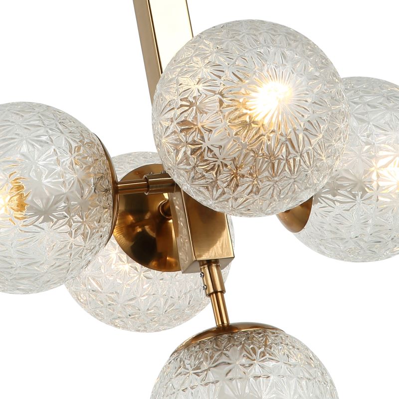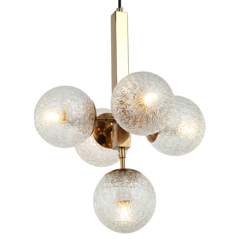 Светильник подвесной из коллекции Felis / Фелис выполнен из металла, гальванизированного в цвет бронзы, и декорирован плафонами из фактурного прозрачного стекла. Премиальное качество и неповторимыи? дизаи?н светильников идеально подои?дут в современные дизайнерские интерьеры.