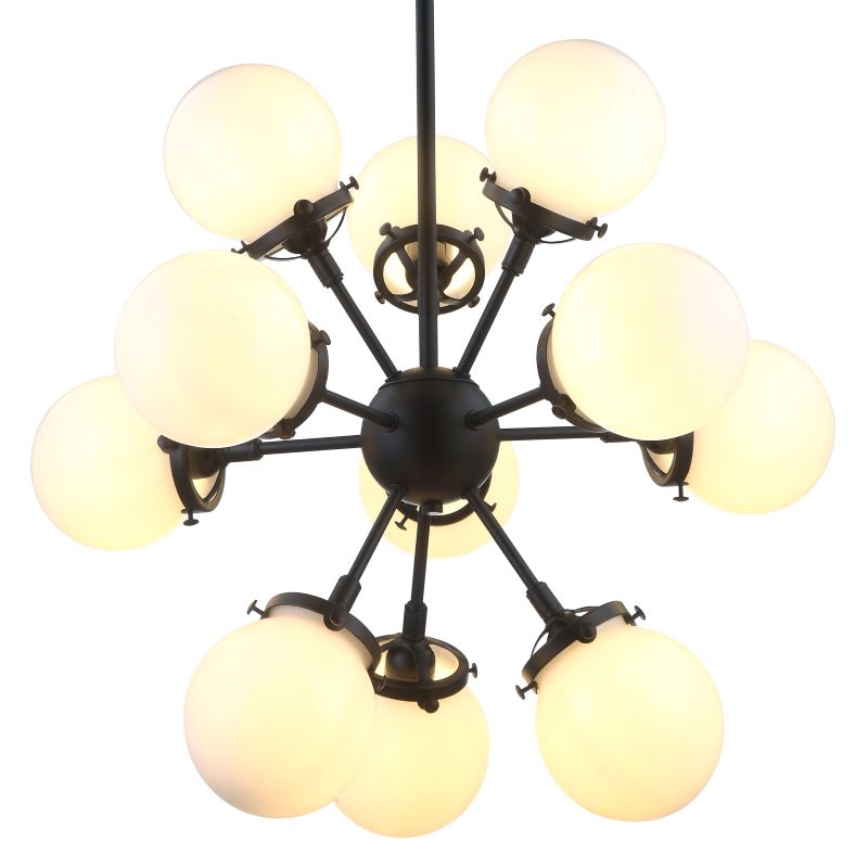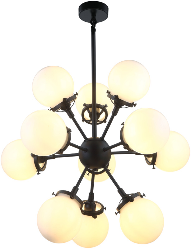 Люстра подвесная из коллекции Ring / Ринг выполнена из металла, окрашенного в черный цвет, и декорирована стеклянными круглыми плафонами из матового стекла. Премиальное качество и неповторимыи? дизаи?н светильников идеально подои?дут в современные и дизайнерские интерьеры.