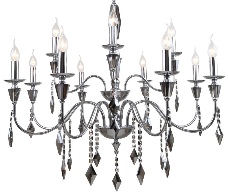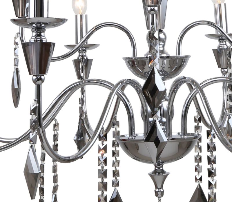 Люстра подвесная из коллекции Grace / Грейс выполнена из металла, гальванизированного в цвет тонированного хрома, и декорирована массивами хрусталя и хрустальными подвесками в форме ромба цвета тонированного хрома. Премиальное качество и неповторимыи? дизаи?н светильников идеально подои?дут как в классические, так и современные интерьеры.