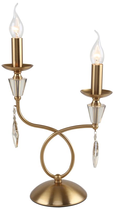 Светильник настольный из коллекции Grace / Грейс выполнен из металла, гальванизированного в цвет бронзы, и декорирована массивами хрусталя и хрустальными подвесками в форме ромба цвета шампань.