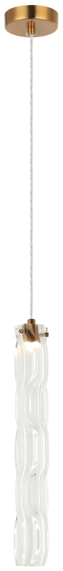 Светильник подвесной из коллекции Still / Стилл выполнен из металла, гальванизированного в цвет бронзы, и декорирован вытянутым стеклянным плафоном с волнистой фактурой. Провод на подвесе выполнен из перекрученного прозрачного шнура в винтажном стиле.