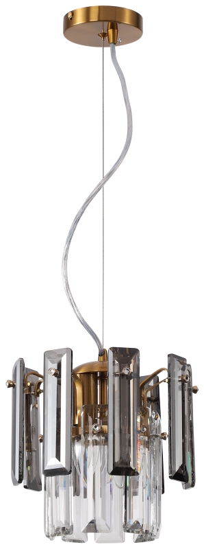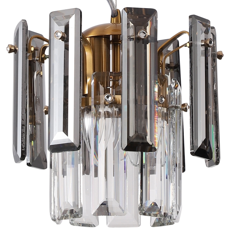 Светильник подвесной из коллекции Ton / Тон выполнен из металла, гальванизированного в цвет бронзы, и декорирован прозрачным и дымчатым хрусталем высшей категории прямоугольной формы. Подвес выглядит респектабельно и современно.