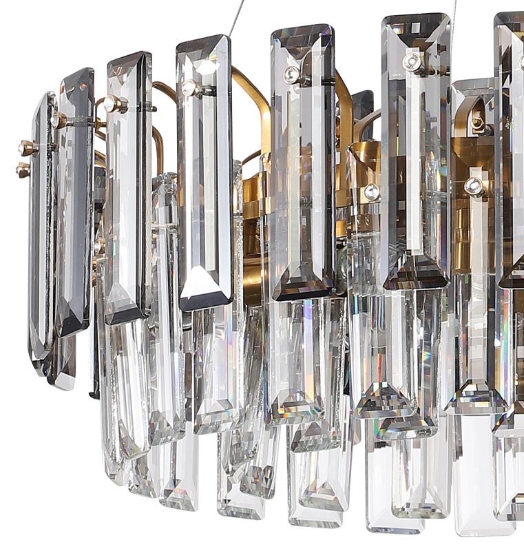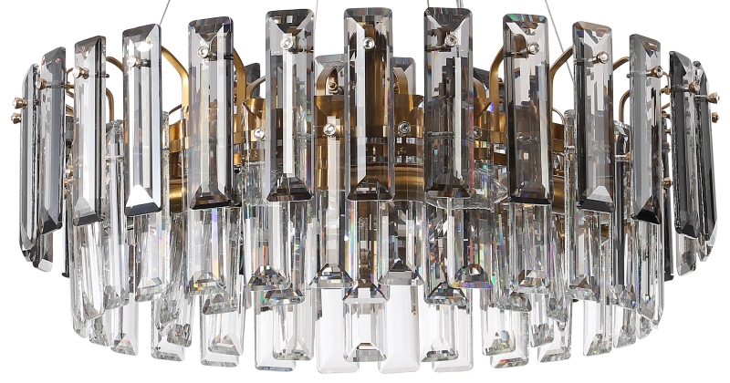 Люстра подвесная из коллекции Ton / Тон выполнена из металла, гальванизированного в цвет бронзы, и декорирована прозрачным и дымчатым хрусталем высшей категории прямоугольной формы. Люстра выглядит респектабельно и современно.