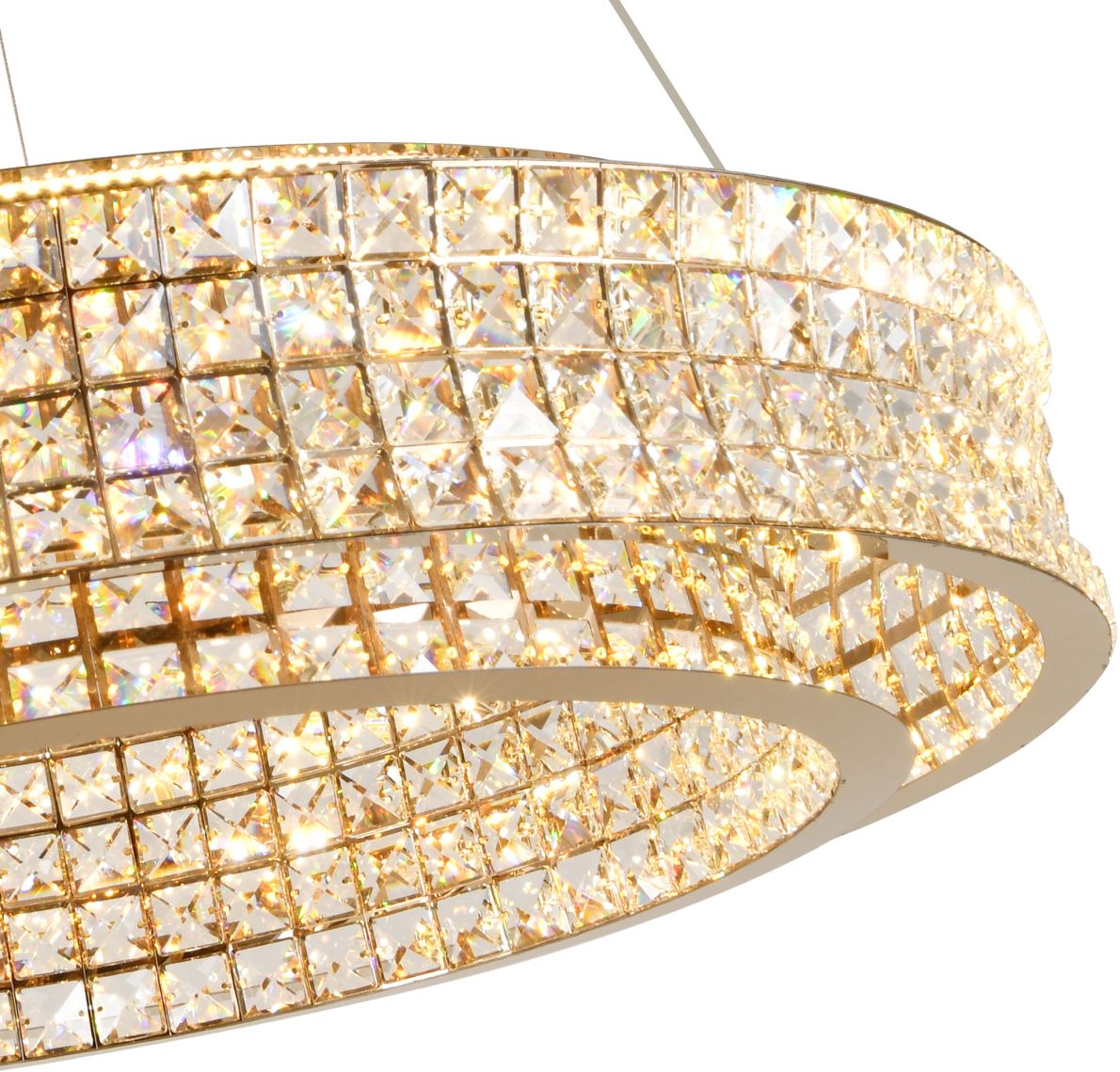 Люстра подвесная эксклюзивной коллекции Karnelli / Карнелли выполнена из нержавеющей стали золотого цвета и декорирована текстурным хрусталем высшей категории. Модель комплектуется пультом дистанционного управления 2,4G и драйвером высокого качества европейского стандарта T?V, обеспечивающим переключение трех режимов световой температуры и диммирование. Премиальное качество и неповторимыи? дизаи?н светильников идеально подои?дут как в классические, так и современные дизайнерские интерьеры. Из данной коллекции светильников можно сделать индивидуальный заказ любого цвета и размера.