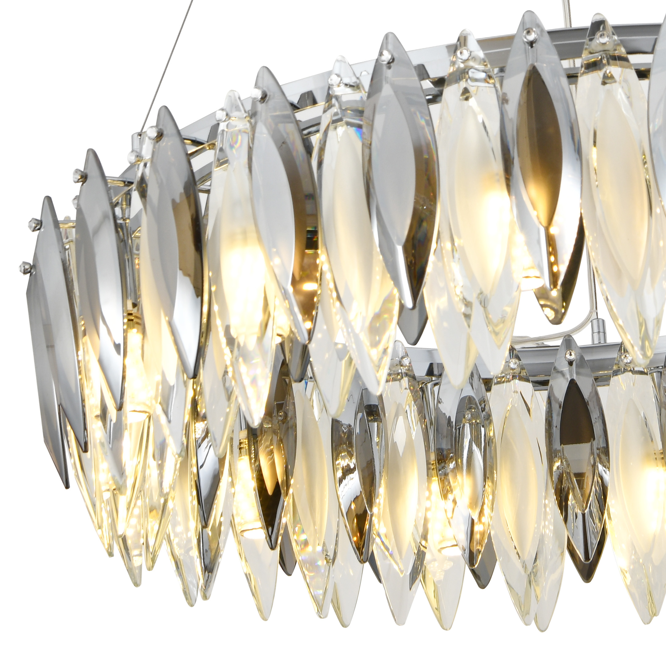 Люстра подвесная из коллекции New Ton / Нью Тон выполнена из металла, гальванизированного в цвет хрома, и декорирована прозрачным и дымчатым хрусталем вытянутой формы высшей категории. Премиальное качество и неповторимый дизайн светильника идеально подойдут как в классические, так и современные интерьеры. Из данной коллекции светильников можно сделать индивидуальный заказ любого цвета и размера.