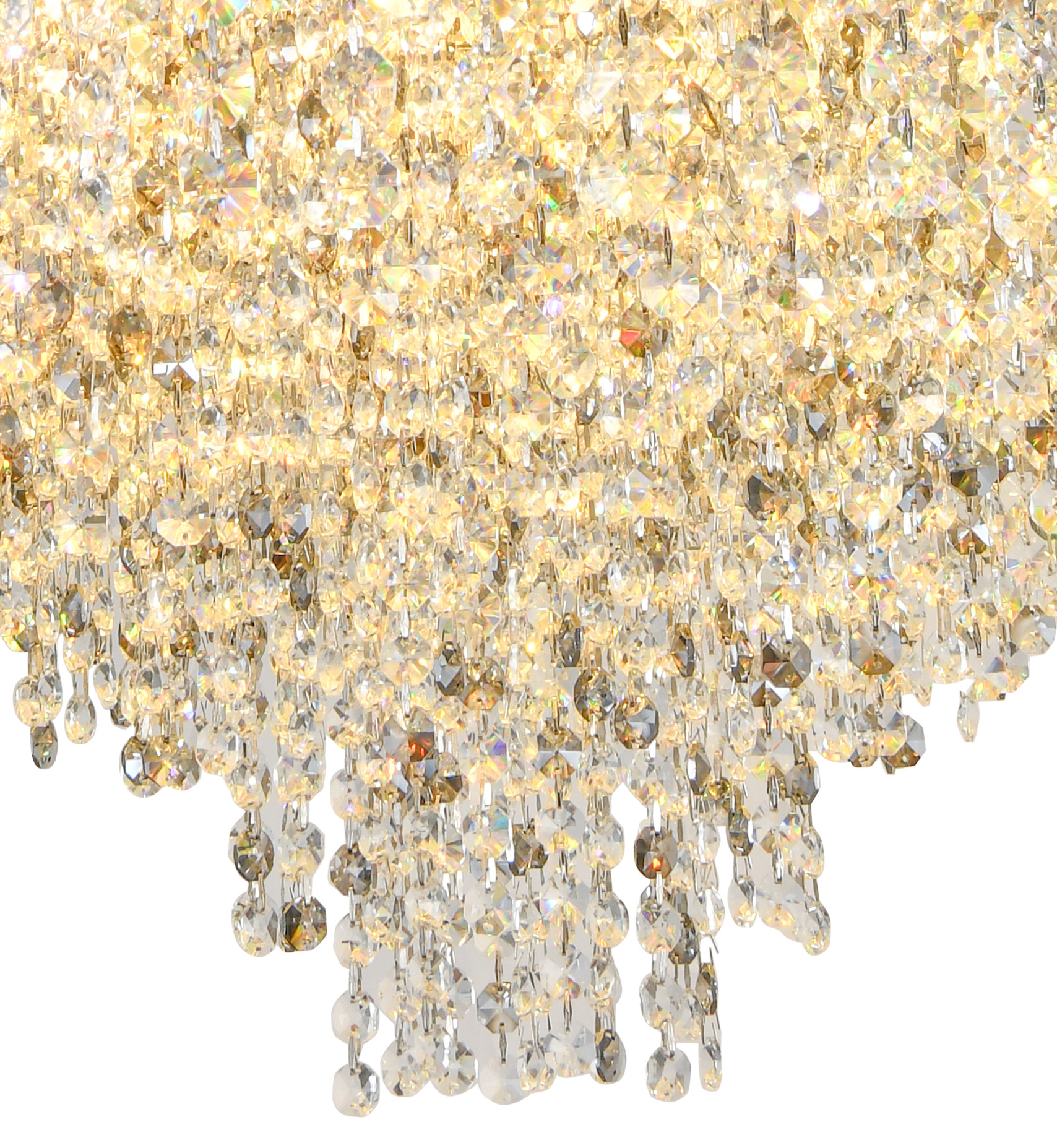Люстра подвесная коллекции Rain of Crystal / Рейн оф Кристал выполнена из металла, гальванизированного в цвет хрома, и декорирована прозрачным и дымчатым хрусталём высшей категории. Особенностью данной коллекции является возможность использовать её как в подвесном, так и в потолочном варианте. На верхней части люстры установлен декоративный лист из нержавеющей стали, отполированный до зеркального блеска, который скрывает технические элементы и позволяет устанавливать её в лестничных проёмах и помещениях со вторым светом. Высокое качество и неповторимый дизайн светильника идеально подойдут как для классических, так и для современных интерьеров. Из данной коллекции светильников можно сделать индивидуальный заказ любого цвета и размера.