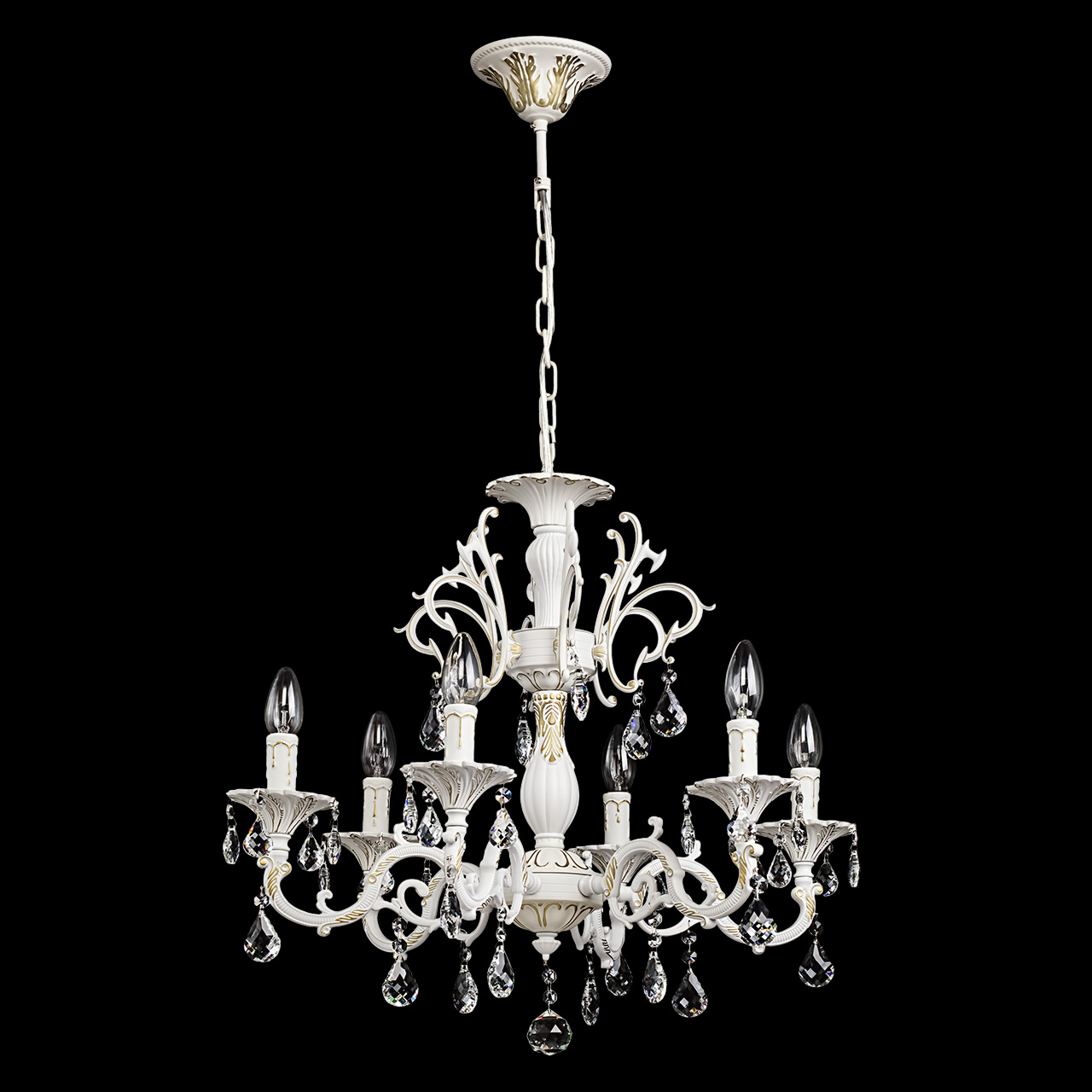 Классическая форма металлического светильника Свеча представлена в белой цветовой гамме с позолотой, что соответствует современным декоративным трендам. Элегантные подвески из драгоценного хрусталя солнечно вторят сиянию света, излучаемого стилизованными свечами. Сочетание идеальных линий арматуры и броского тонового оформления светильника Свеча понравится как ценителям прекрасной старины, так и приверженцам современного стиля.